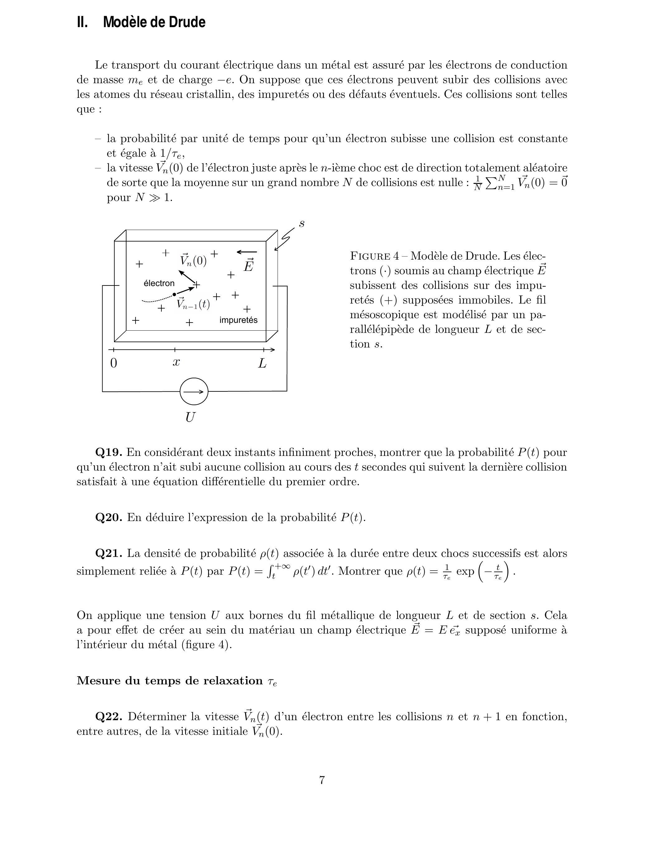 Q23. Déduire de ce qui précède la valeur moyenne de la vitesse d'un électron au moment du -ième choc. Montrer qu'elle est indépendante de . représente la moyenne statistique (définie dans le formulaire mathématique) associée à la densité de probabilité et à la statistique de .