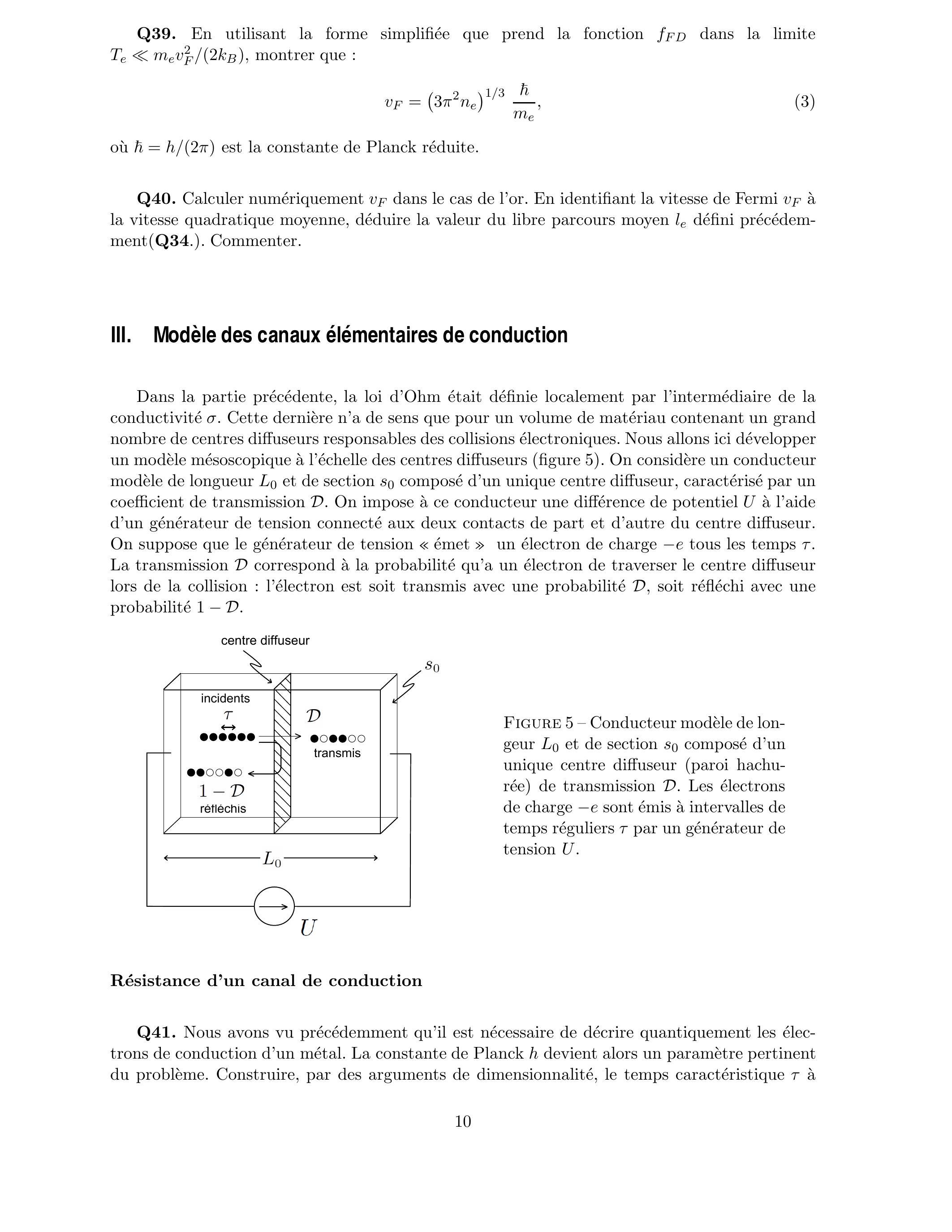 Q41. Nous avons vu précédemment qu'il est nécessaire de décrire quantiquement les électrons de conduction d'un métal. La constante de Planck devient alors un paramètre pertinent du problème. Construire, par des arguments de dimensionnalité, le temps caractéristique à