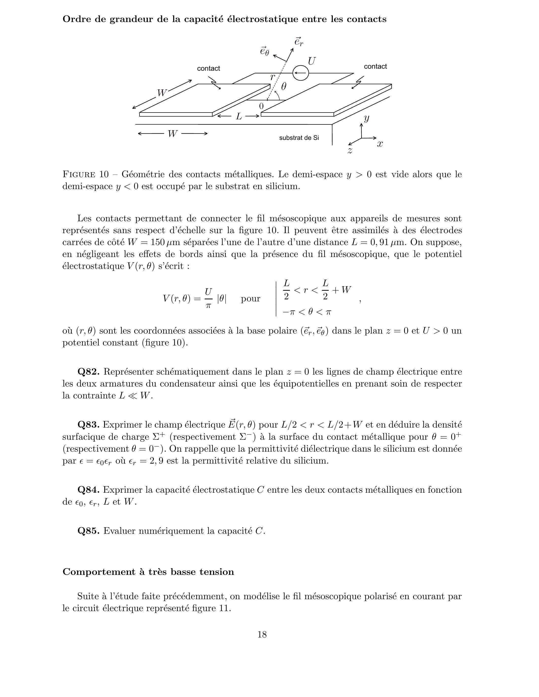 Les contacts permettant de connecter le fil mésoscopique aux appareils de mesures sont représentés sans respect d'échelle sur la figure 10. Il peuvent être assimilés à des électrodes carrées de côté séparées l'une de l'autre d'une distance . On suppose, en négligeant les effets de bords ainsi que la présence du fil mésoscopique, que le potentiel électrostatique s'écrit :