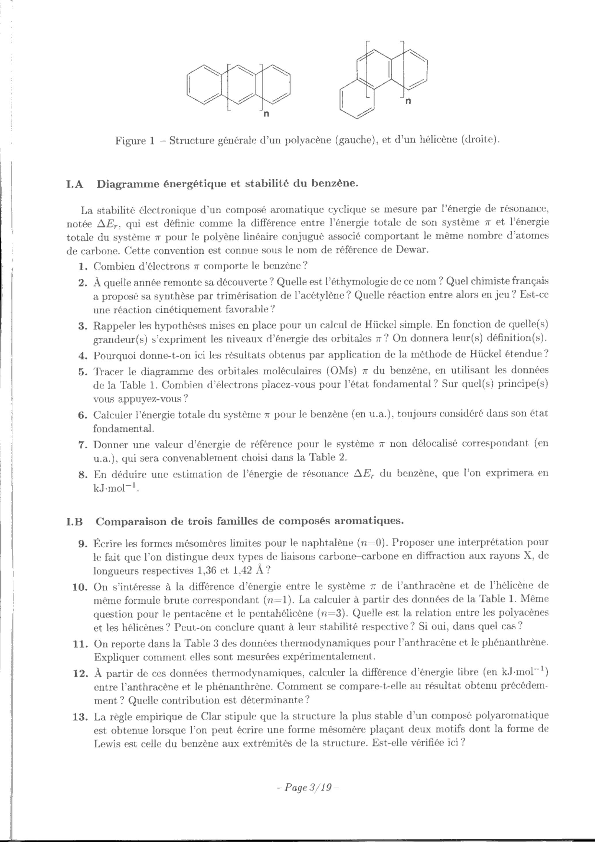 On s'intéresse à la différence d'énergie entre le système de l'anthracène et de l'hélicène de même formule brute correspondant . La calculer à partir des données de la Table 1. Même question pour le pentacène et le pentahélicène ( ). Quelle est la relation entre les polyacènes et les hélicènes? Peut-on conclure quant à leur stabilité respective? Si oui, dans quel cas?