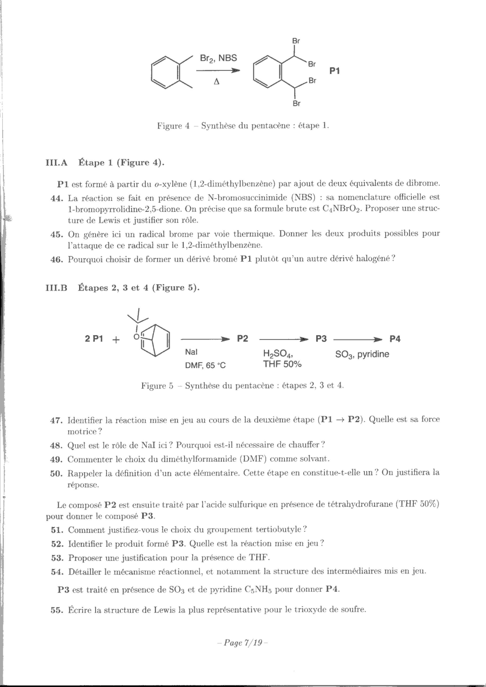 44. La réaction se fait en présence de N-bromosuccinimide (NBS) : sa nomenclature officielle est 1-bromopyrrolidine-2,5-dione. On précise que sa formule brute est . Proposer une structure de Lewis et justifier son rôle.