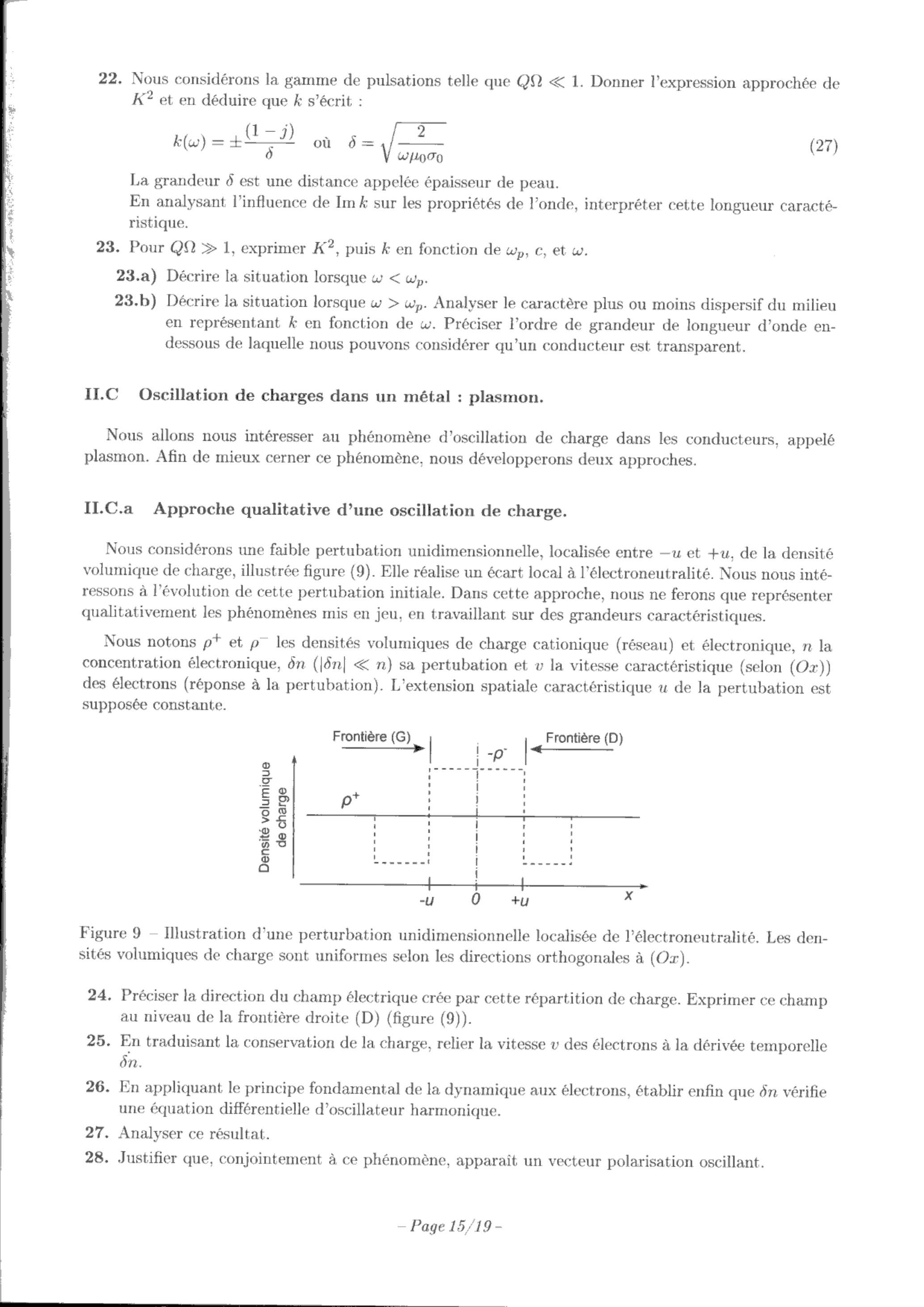 Dans la seconde partie, nous explorerons les propriétés physiques de certains matériaux, notamment les conducteurs. Ceux-ci seront caractérisés à travers leur réponse à une excitation. De manière générale, nous définirons un cadre d'étude permettant d'appréhender la réponse linéaire de systèmes physiques. Cette partie se terminera par une étude des plasmons. Ces ondes de densité de charge peuvent être couplées à des composés organiques déposés sur une interface, tels que ceux étudiés dans la partie consacrée à la chimie.