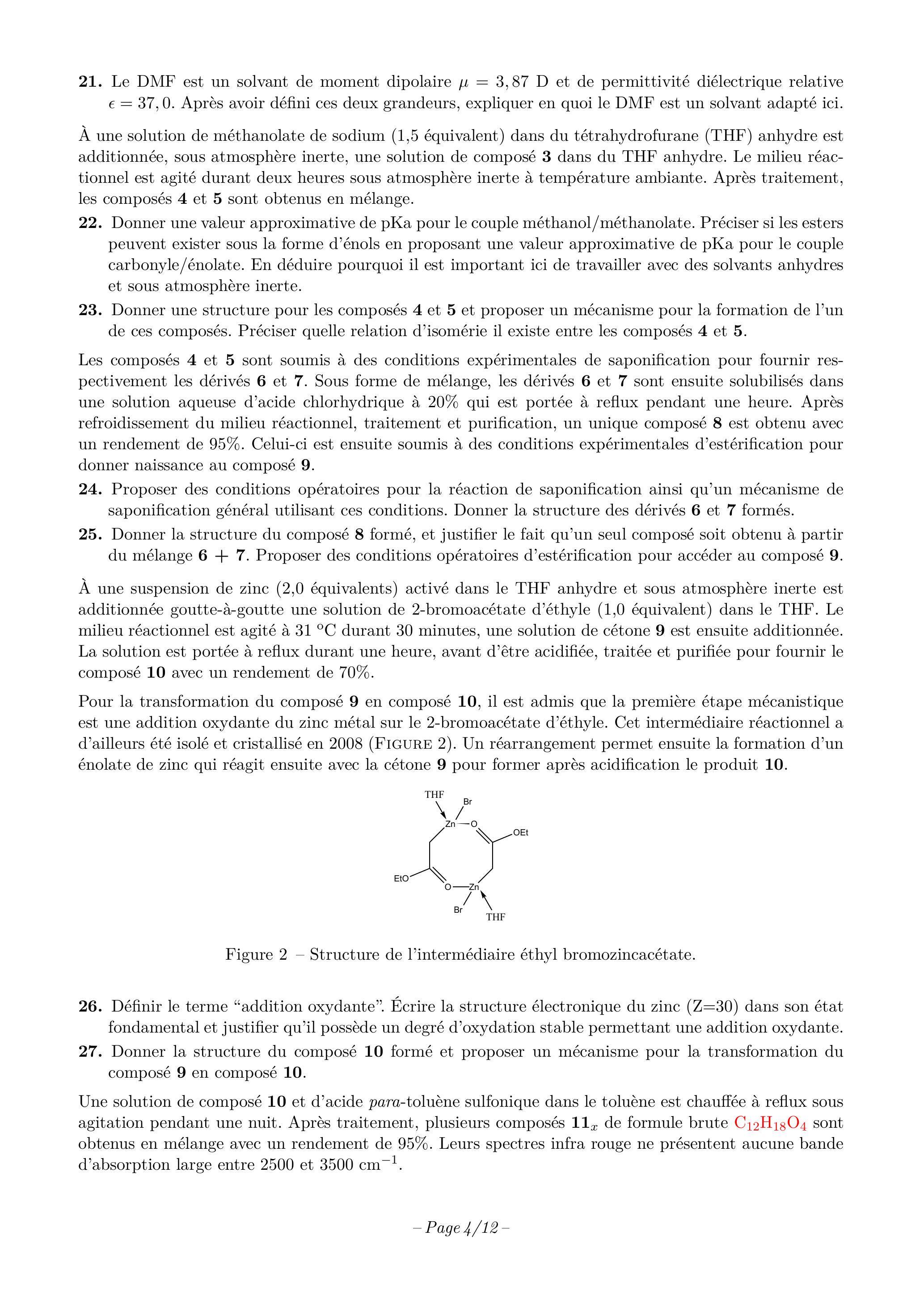 Le candidat attachera la plus grande importance à la clarté, à la précision et à la concision de la rédaction. Une grande rigueur est requise pour l'écriture des mécanismes réactionnels.