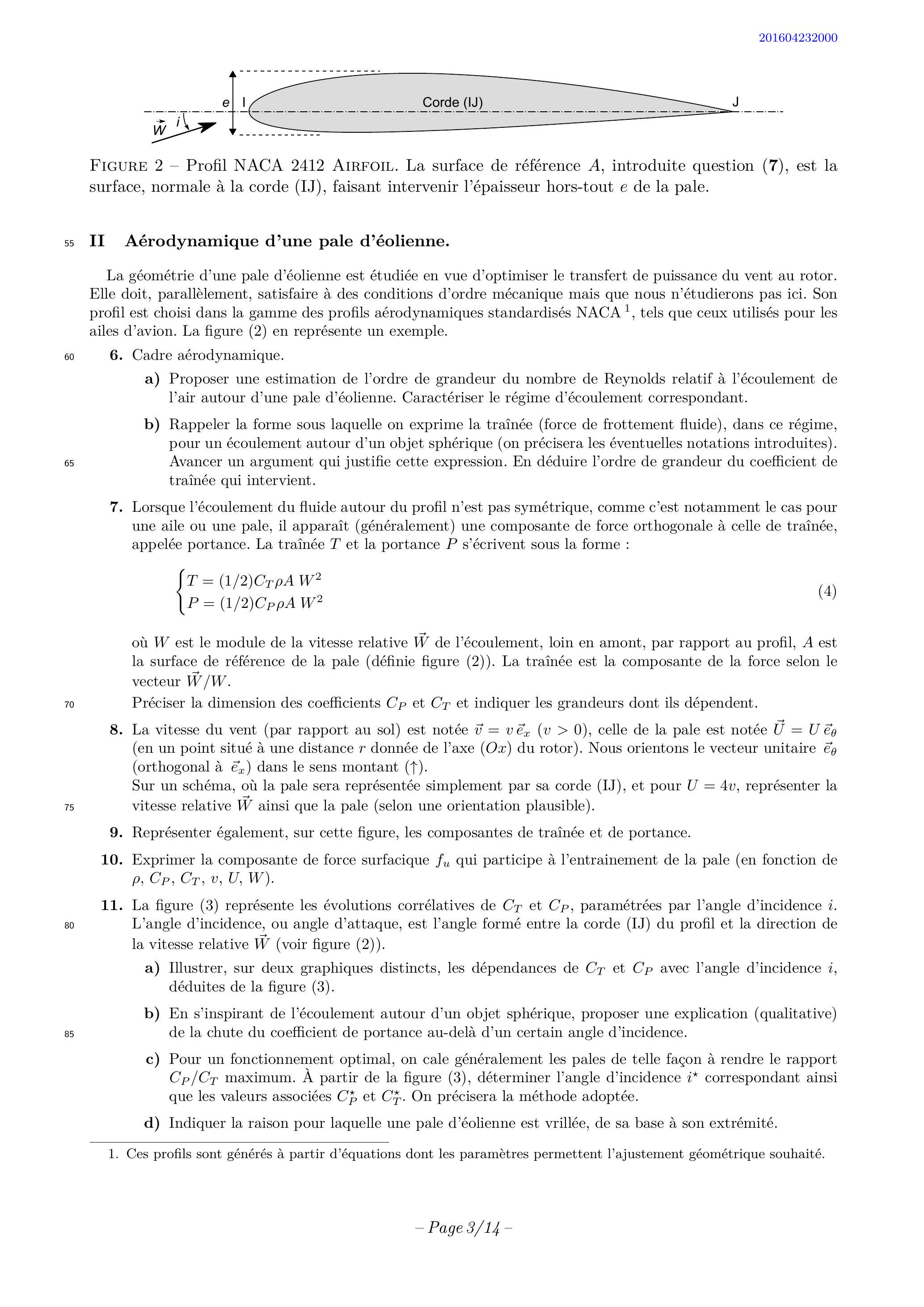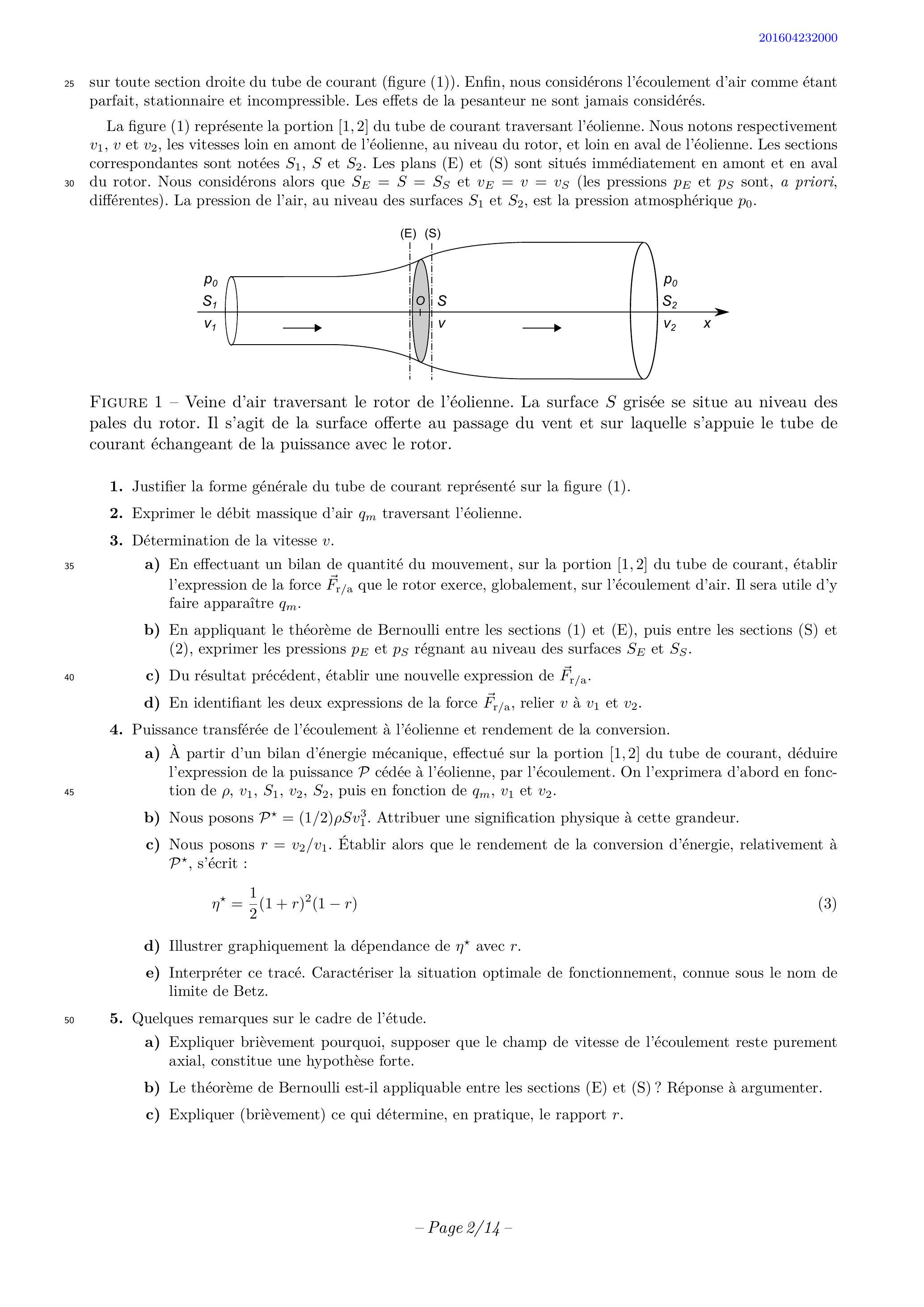 Cette épreuve comprend deux parties indépendantes. La première est consacrée à la physique et traite de la production d'énergie électrique par une éolienne. La seconde est dédiée à la chimie et étudie le stockage de cette énergie à l'aide d'un accumulateur à flux liquide. Chacune de ces parties participe à part égale au barème global.