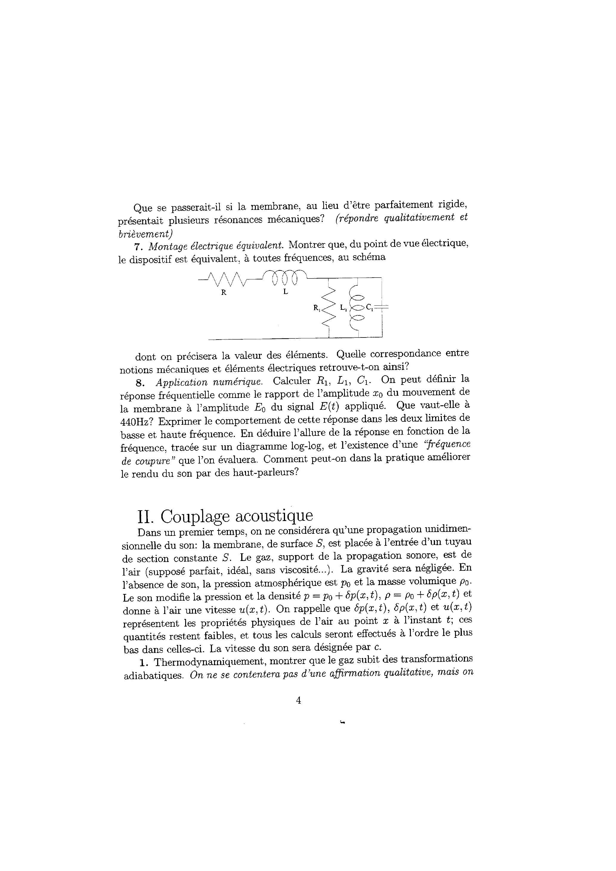 8. Application numérique. Calculer . On peut définir la réponse fréquentielle comme le rapport de l'amplitude du mouvement de la membrane à l'amplitude du signal appliqué. Que vaut-elle à 440 Hz ? Exprimer le comportement de cette réponse dans les deux limites de basse et haute fréquence. En déduire l'allure de la réponse en fonction de la fréquence, tracée sur un diagramme log-log, et l'existence d'une "fréquence de coupure" que l'on évaluera. Comment peut-on dans la pratique améliorer le rendu du son par des haut-parleurs?