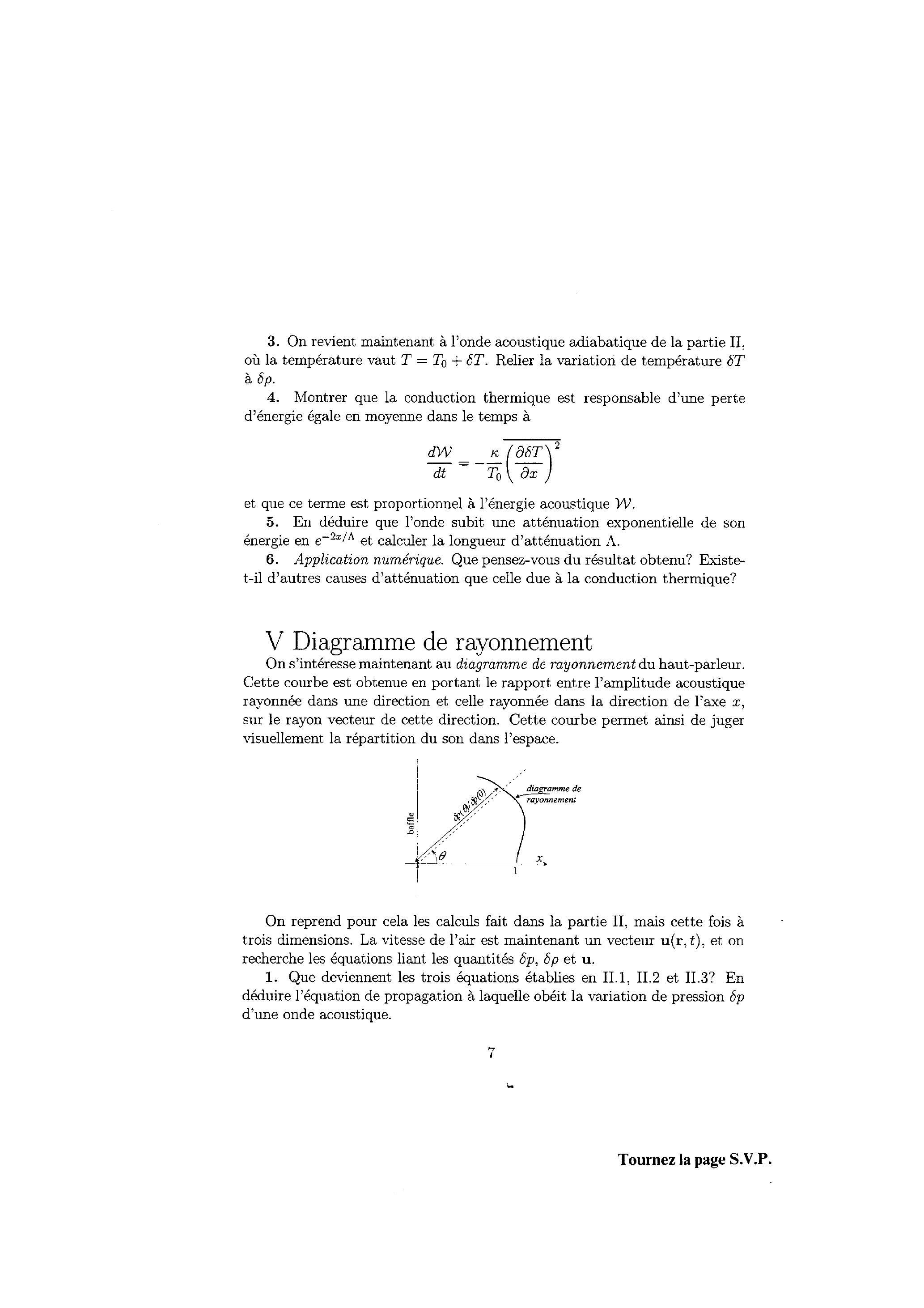 L'énergie acoustique moyenne par unité de volume est . La calculer pour l'onde sonore étudiée en II et montrer qu'elle vaut .