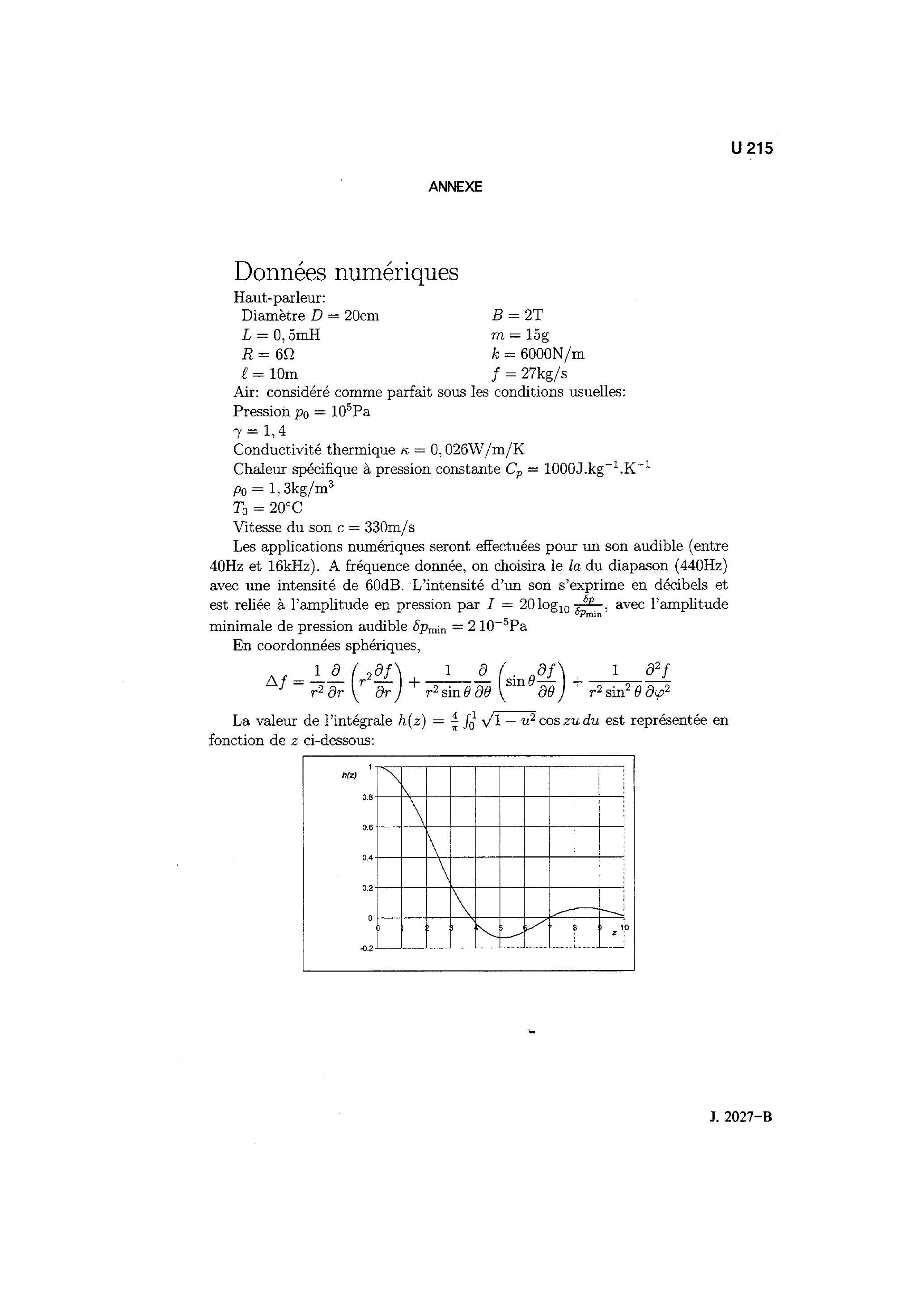 On trouvera en annexe les données numériques à utiliser, ainsi que quelques précisions utiles.