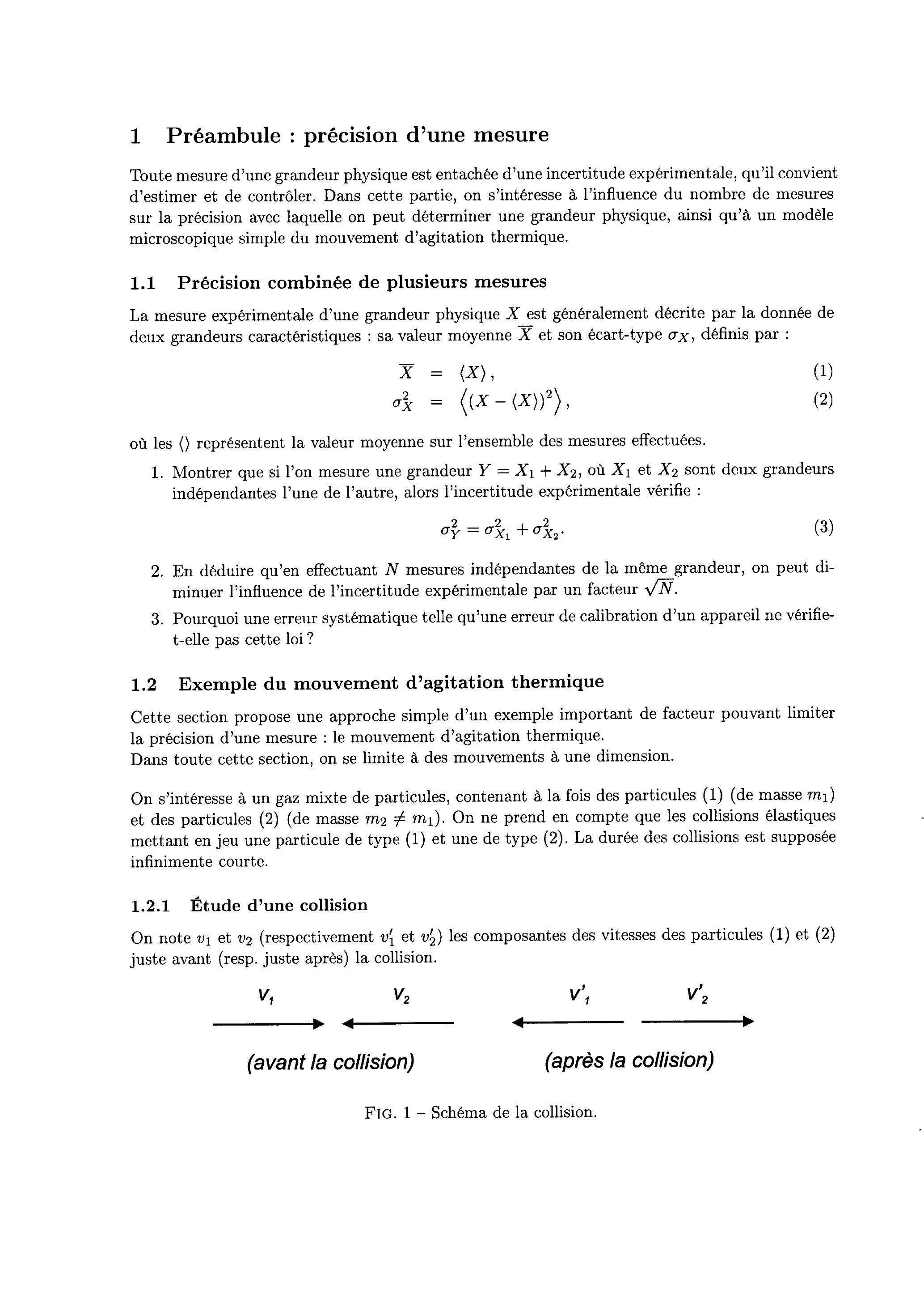 Toute mesure d'une grandeur physique est entachée d'une incertitude expérimentale, qu'il convient d'estimer et de contrôler. Dans cette partie, on s'intéresse à l'influence du nombre de mesures sur la précision avec laquelle on peut déterminer une grandeur physique, ainsi qu'à un modèle microscopique simple du mouvement d'agitation thermique.