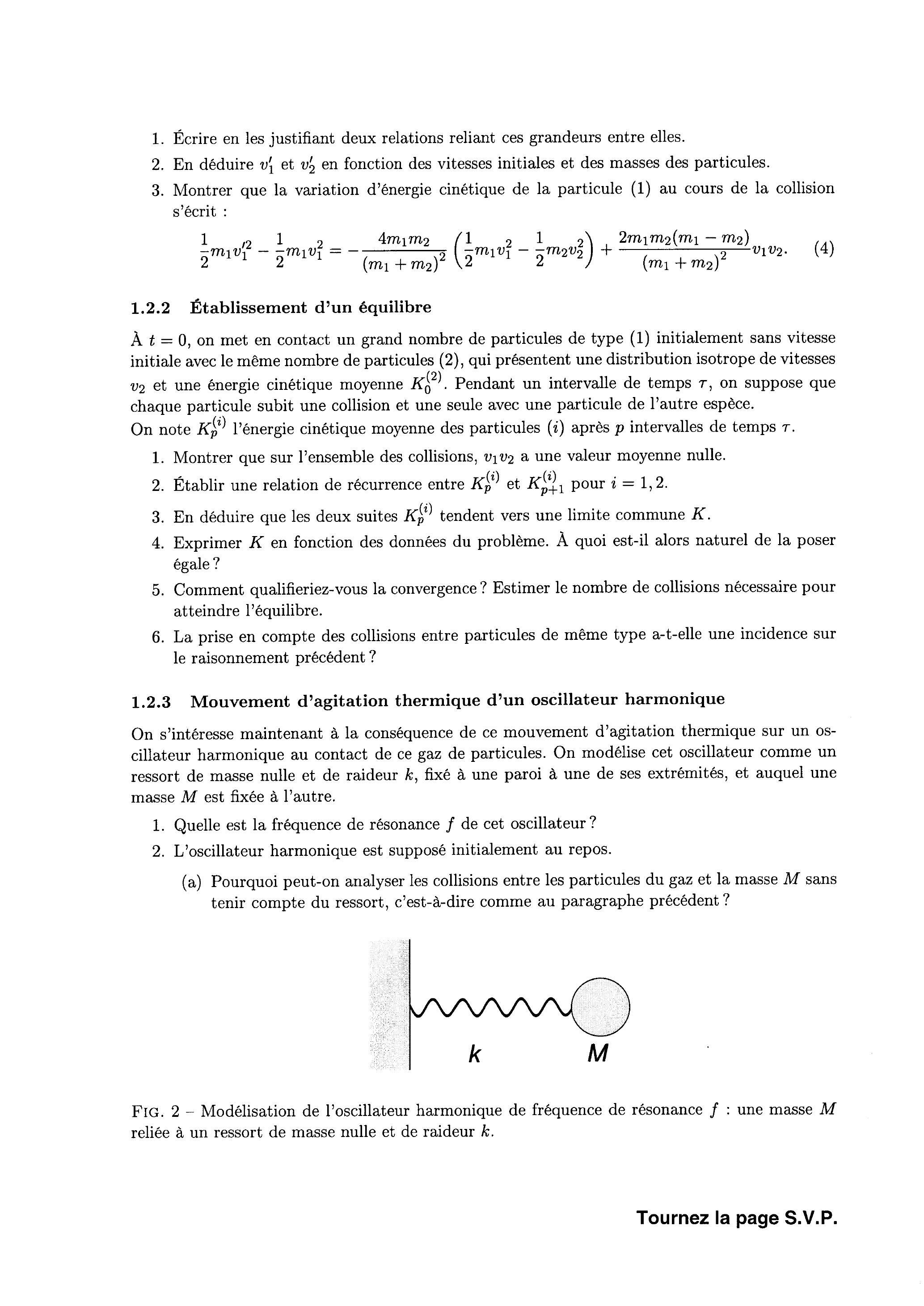 (a) Pourquoi peut-on analyser les collisions entre les particules du gaz et la massesans tenir compte du ressort, c'est-à-dire comme au paragraphe précédent?