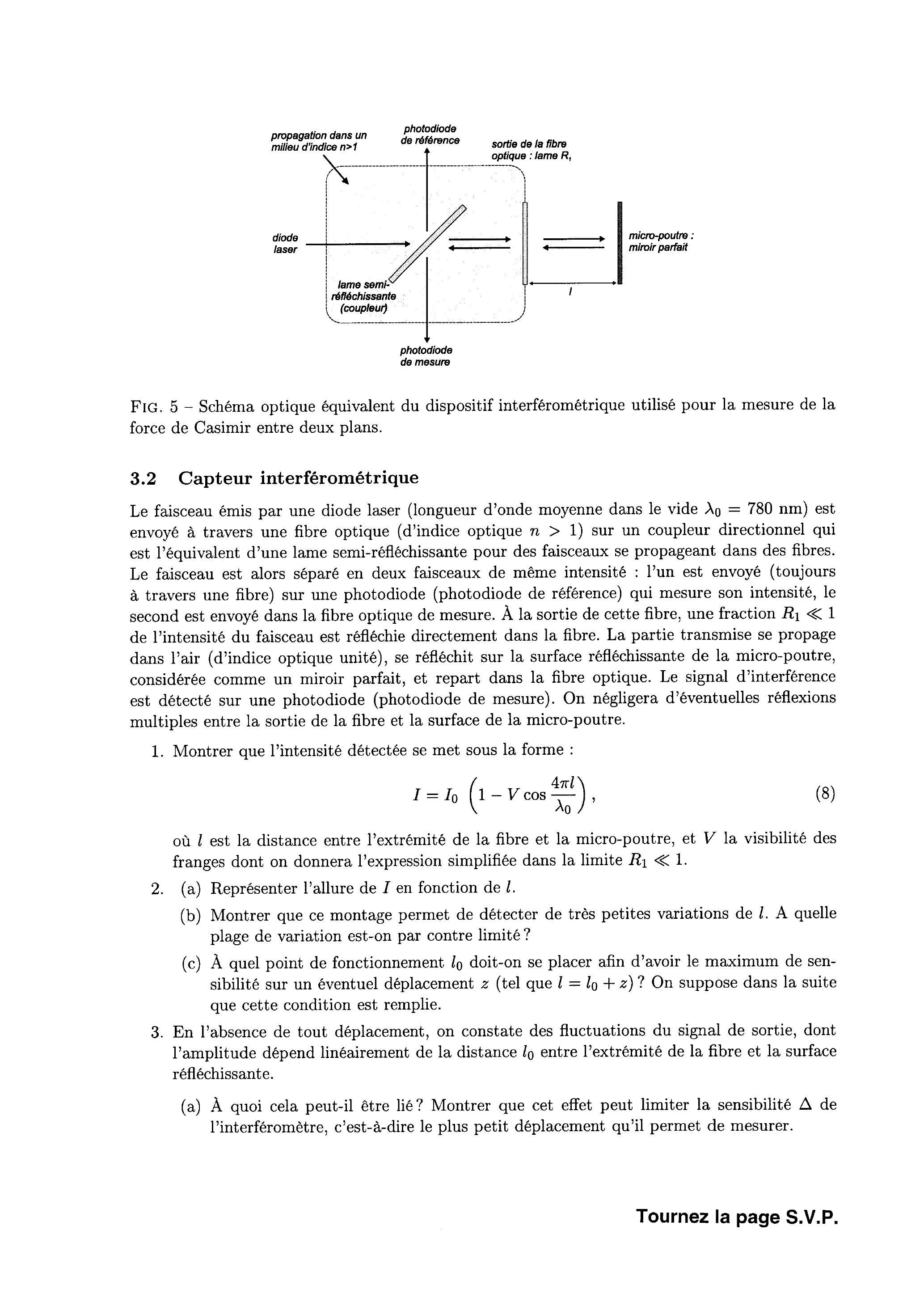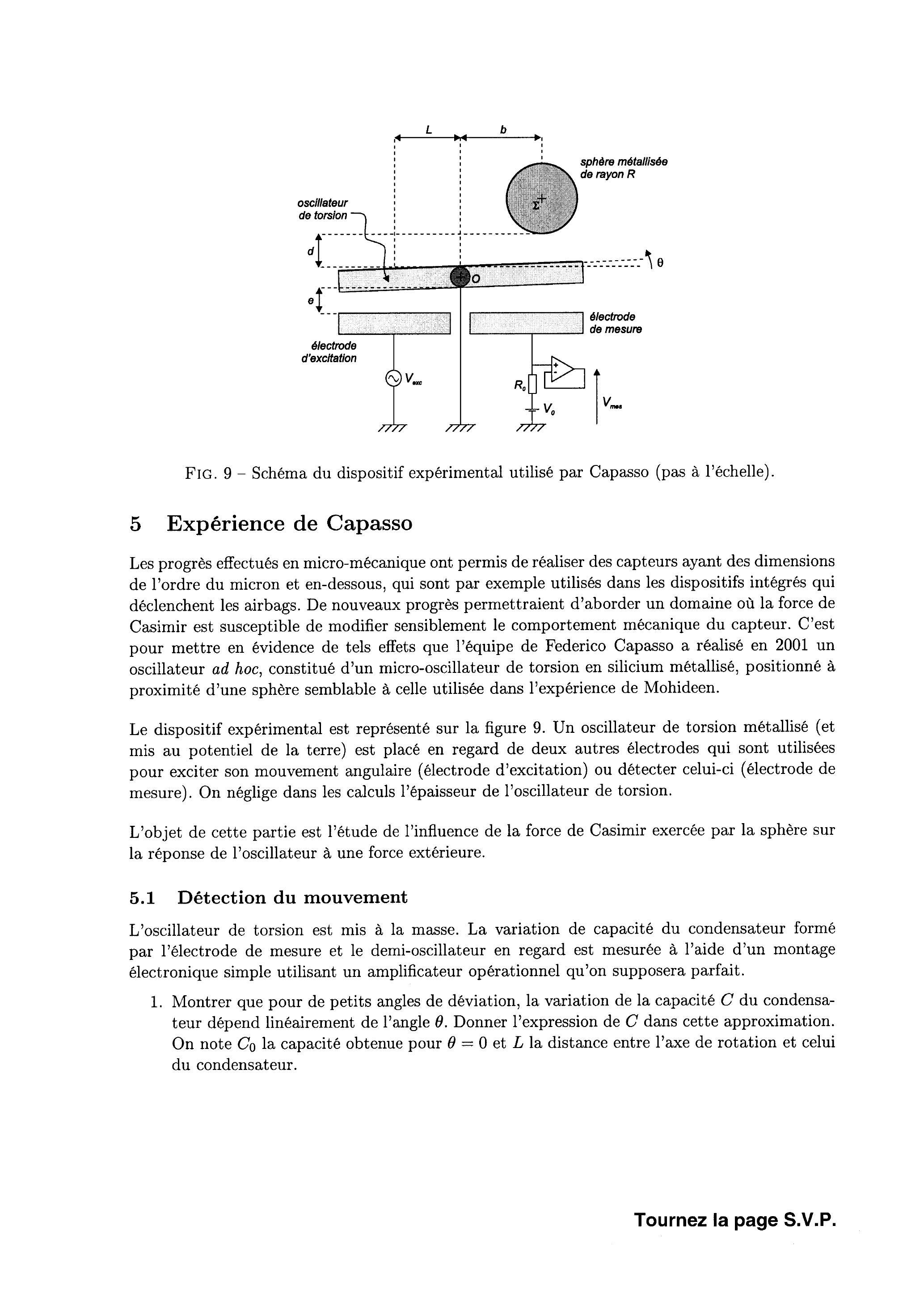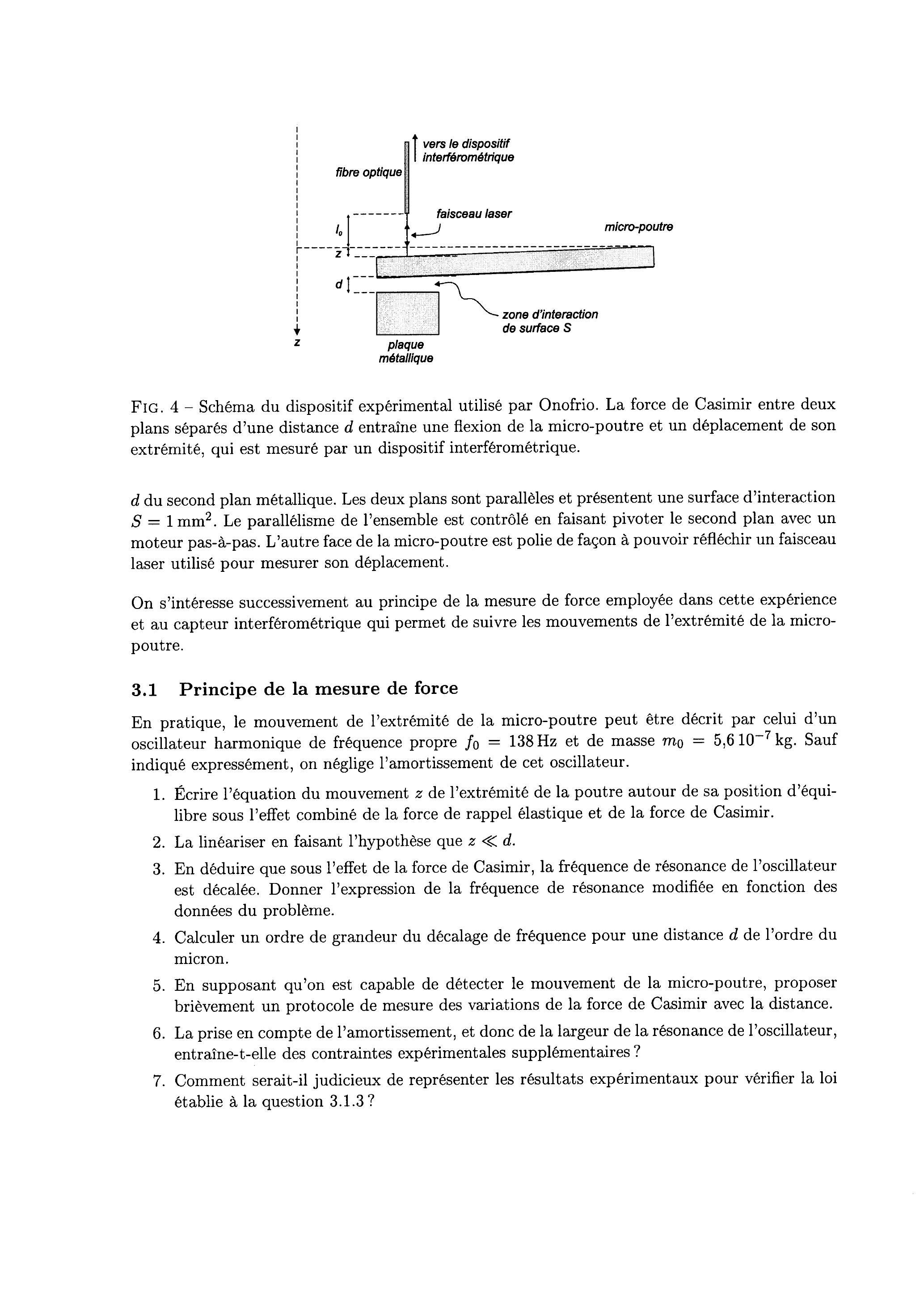 Le problème porte sur l'étude d'un effet découvert théoriquement en 1948 par Hendrik Casimir et qui porte son nom : la force de Casimir. Cette force s'exerce entre deux plans parallèles conducteurs non chargés. Cet effet étant extrêmement faible, il a fallu attendre ces dernières années pour le mesurer avec une précision relative de l'ordre d'un pour cent.