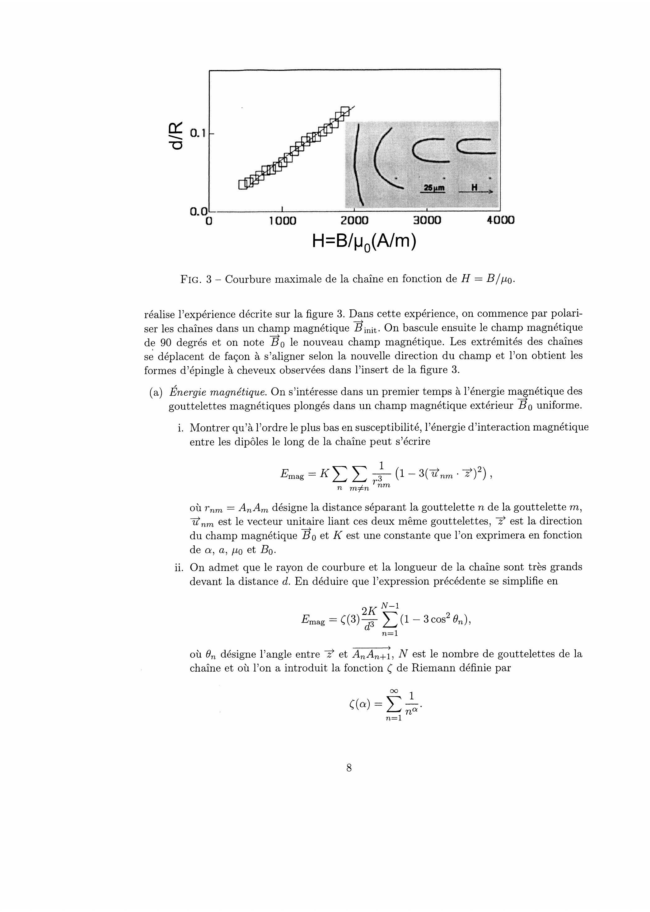 ix. En représentant localement la chaîne par un arc de cercle de rayon (dit rayon de courbure local), relier et . En déduire la courbure maximale de la chaîne magnétique. Préciser en particulier la dépendance avec le champ magnétique et comparer aux données de la figure 3.