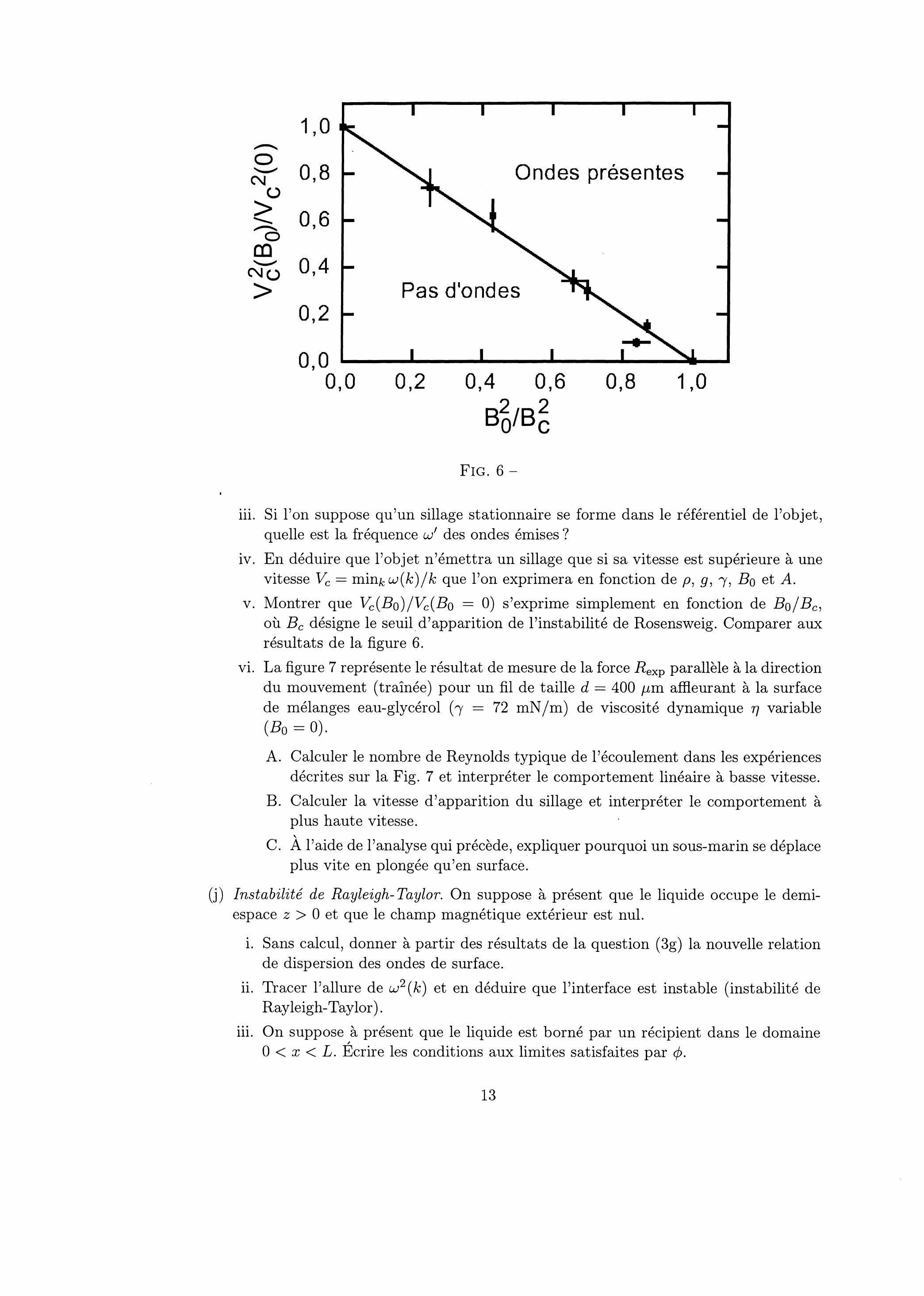 v. Montrer que s'exprime simplement en fonction de , où désigne le seuil d'apparition de l'instabilité de Rosensweig. Comparer aux résultats de la figure 6.
