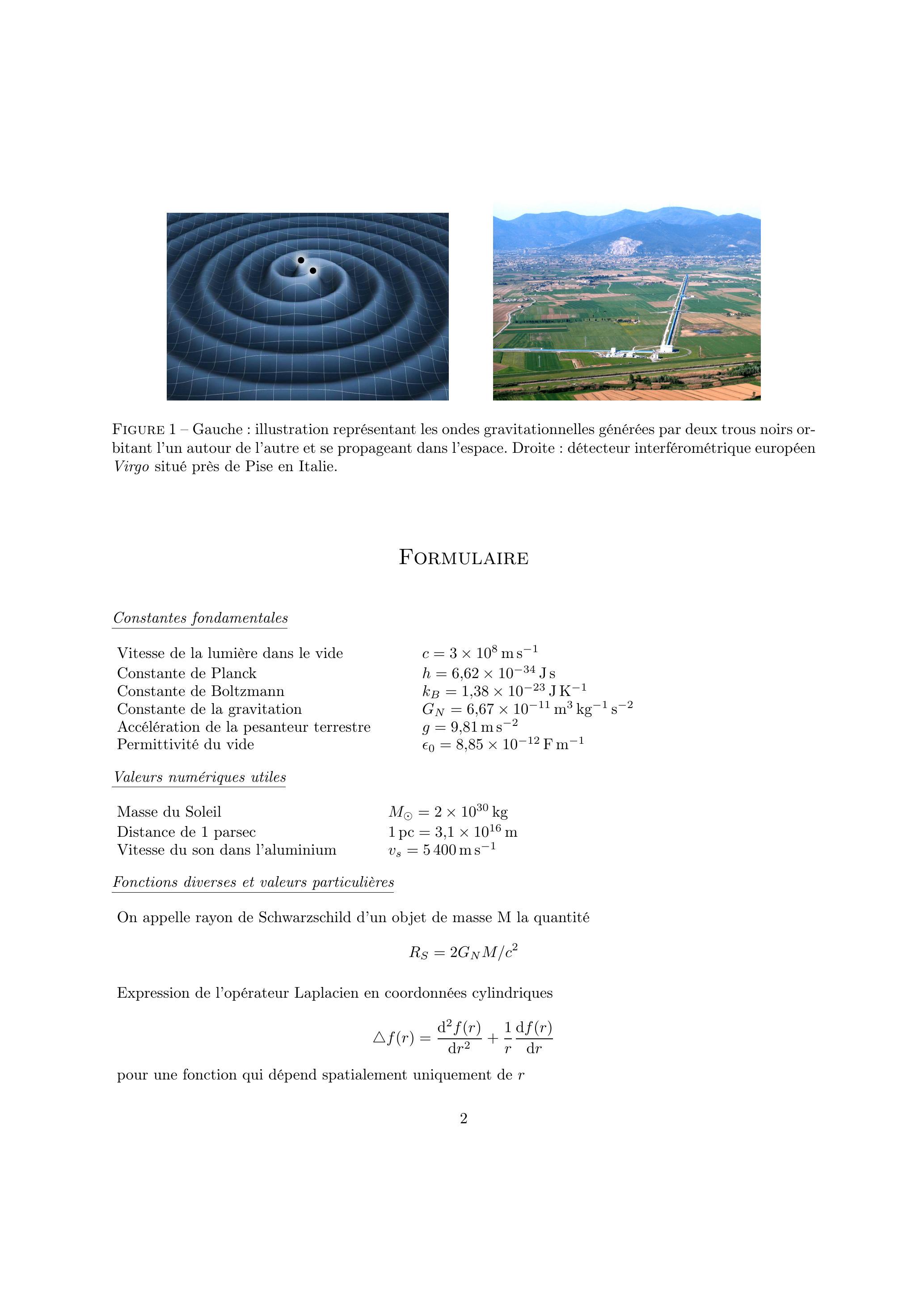 Q47. Pour le détecteur Virgo, les bras mesurent 3 km au repos. Pourquoi utiliser un interféromètre si grand? Donner un ordre de grandeur de et de . Vérifier l'approximation et comparer à des ordres de grandeurs usuels.
