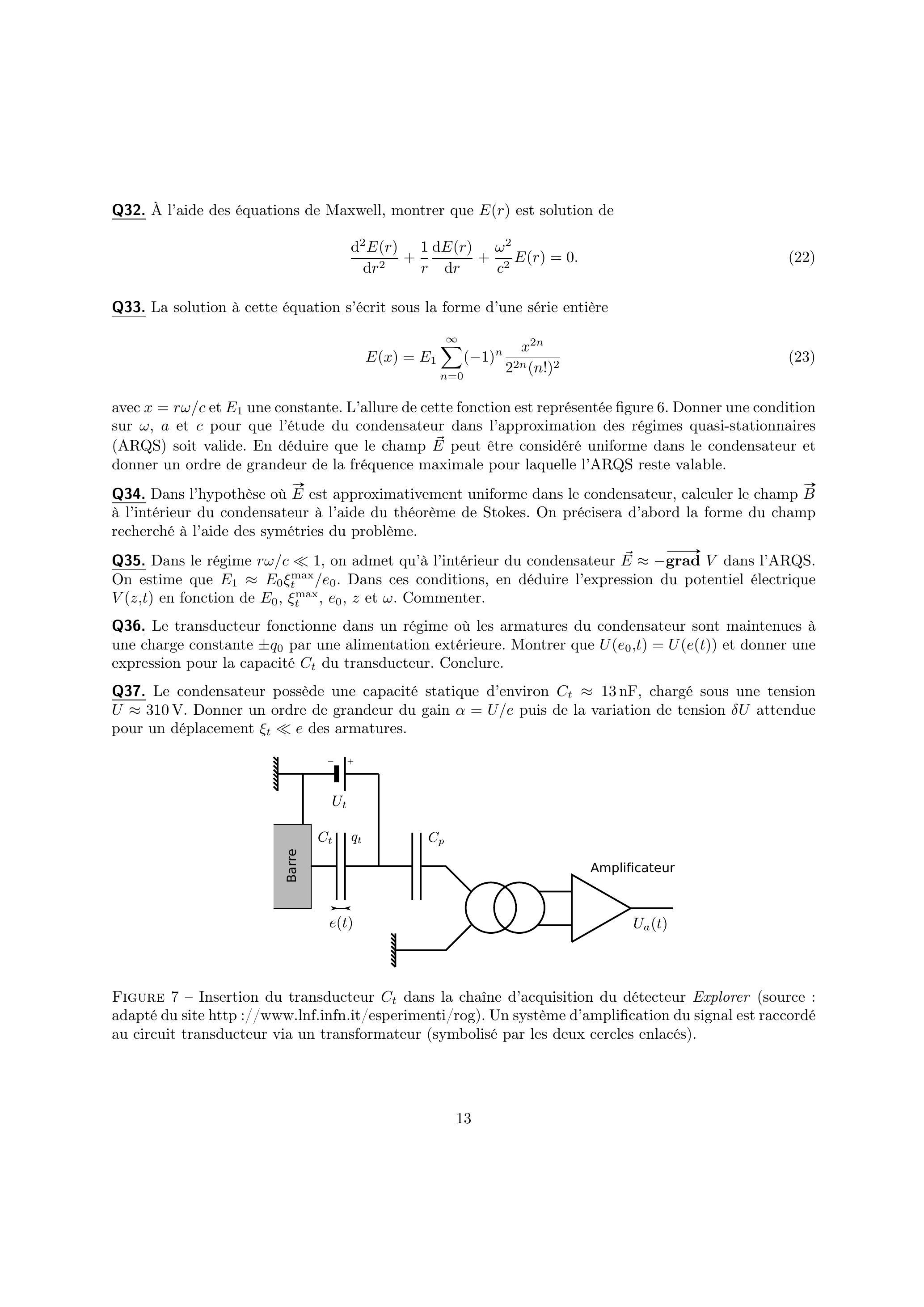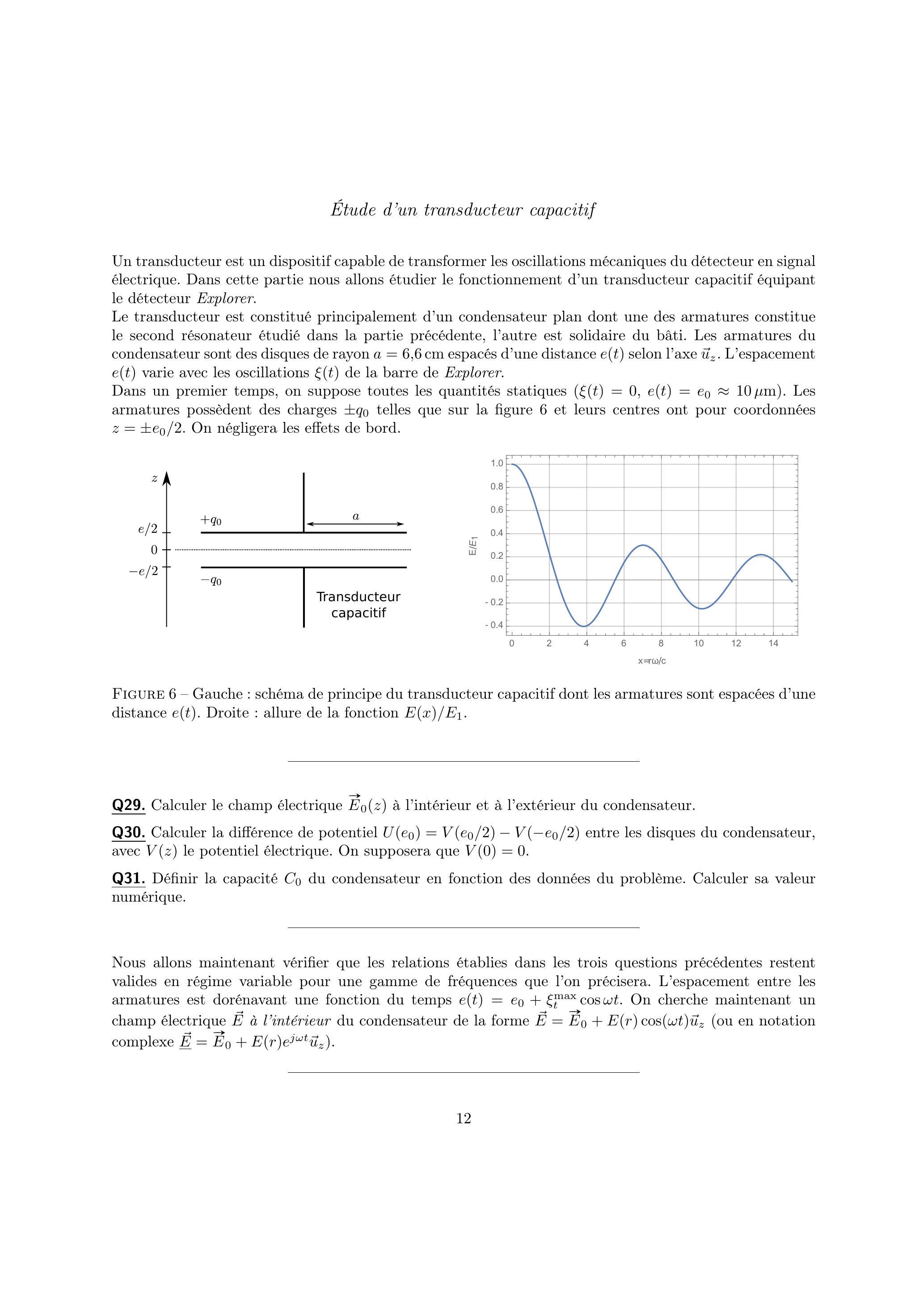 Q37. Le condensateur possède une capacité statique d'environ , chargé sous une tension . Donner un ordre de grandeur du gain puis de la variation de tension attendue pour un déplacement des armatures.