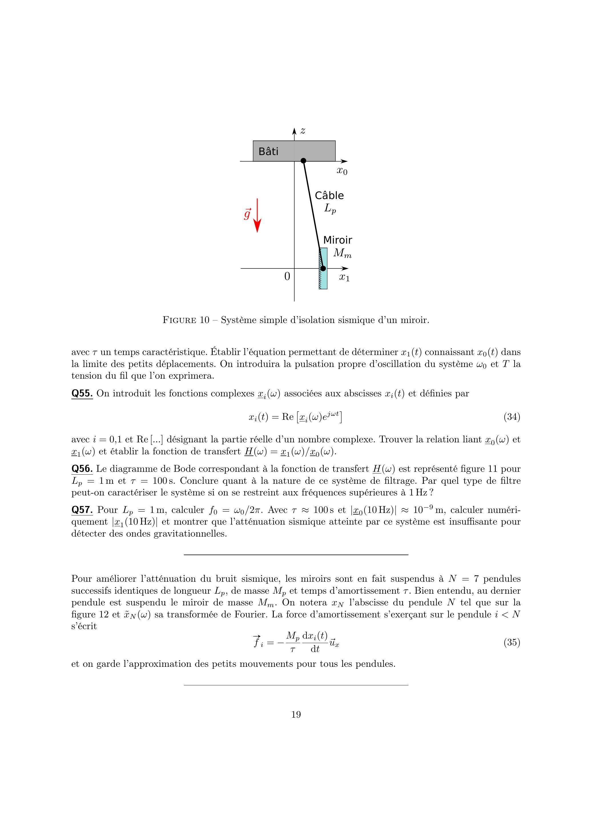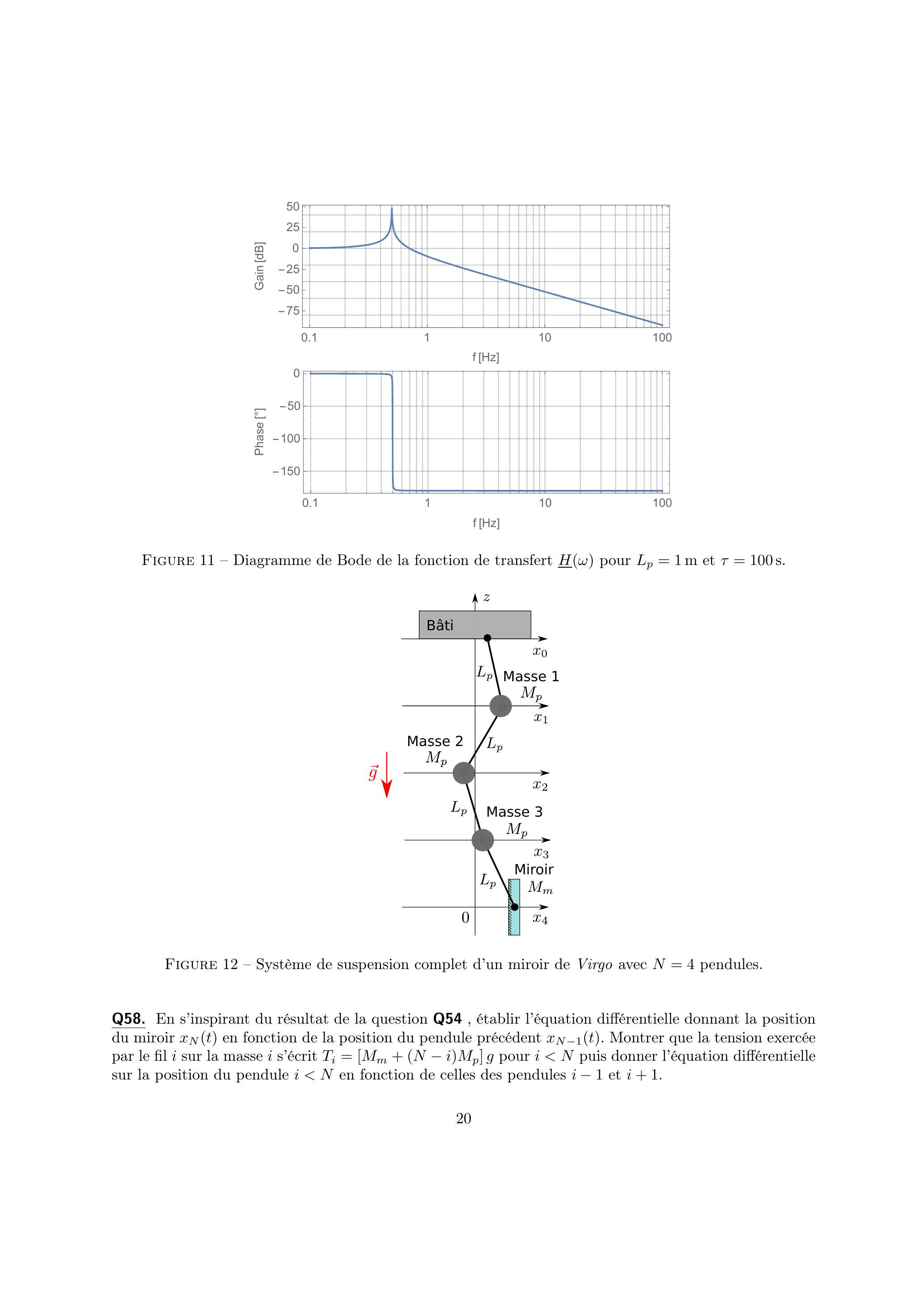Q57. Pour , calculer . Avec et , calculer numériquement et montrer que l'atténuation sismique atteinte par ce système est insuffisante pour détecter des ondes gravitationnelles.