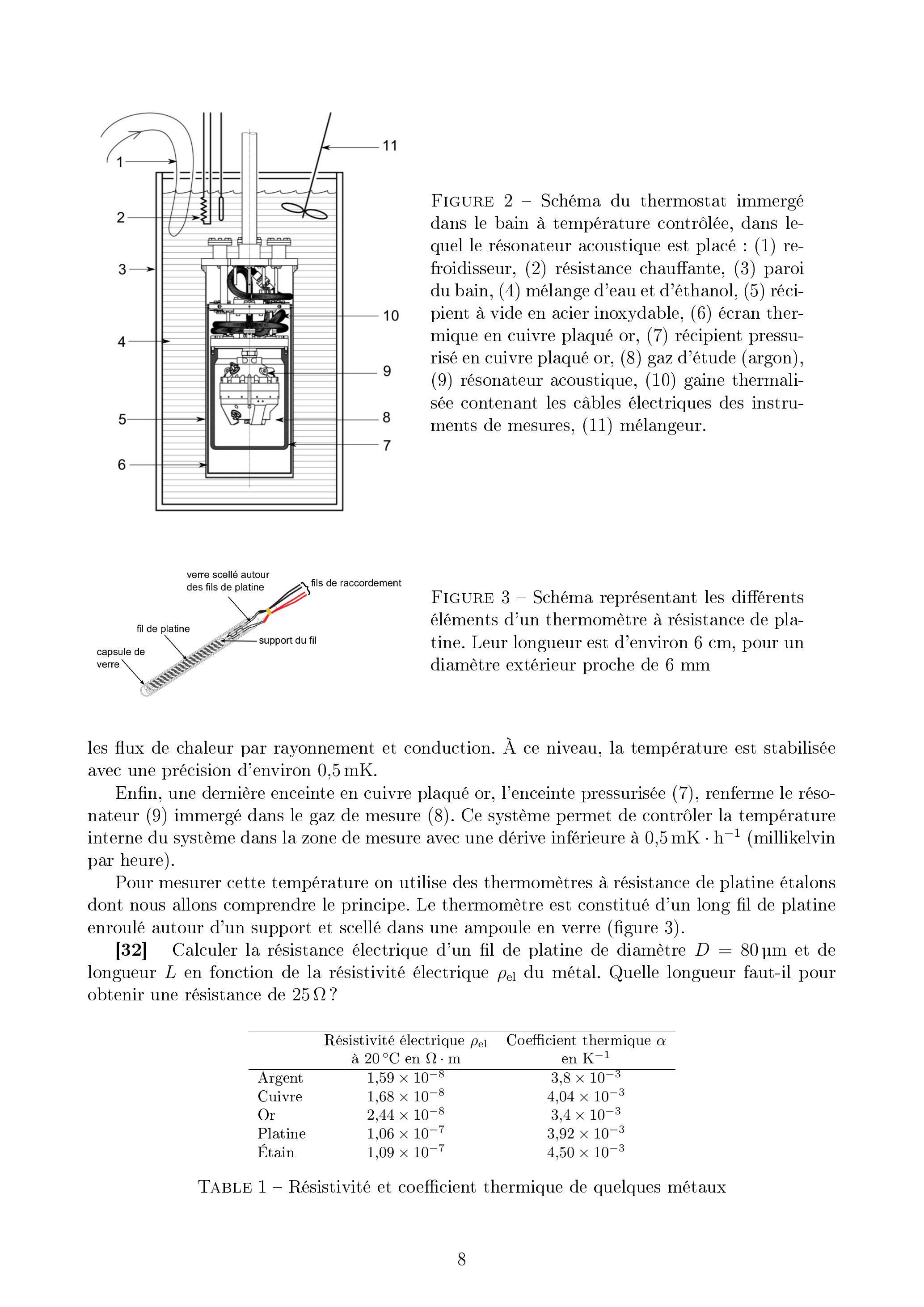 Dans ce problème, les valeurs numériques choisies sont celles de l'expérience qui a été réalisée en 2012 au Conservatoire National des Arts et Métiers et au Laboratoire National de Métrologie et d'Essai. Le gaz utilisé est l'argon. Le rayon de la cavité est d'environ 5 cm . L'expérience est effectuée à une température proche de .