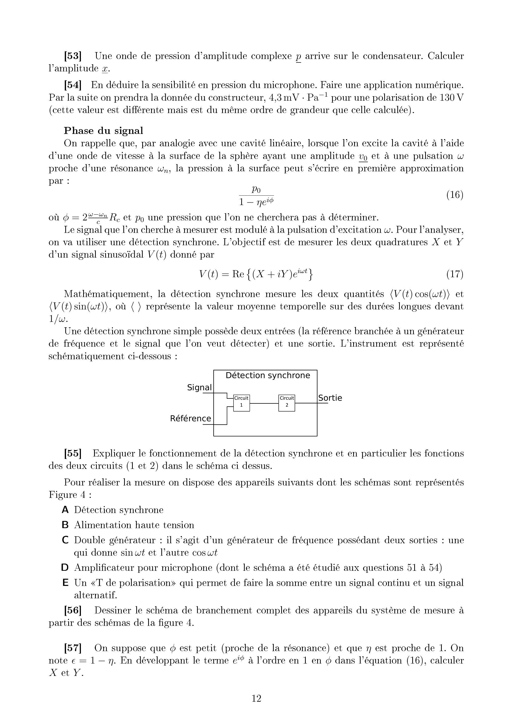 [53] Une onde de pression d'amplitude complexe arrive sur le condensateur. Calculer l'amplitude .