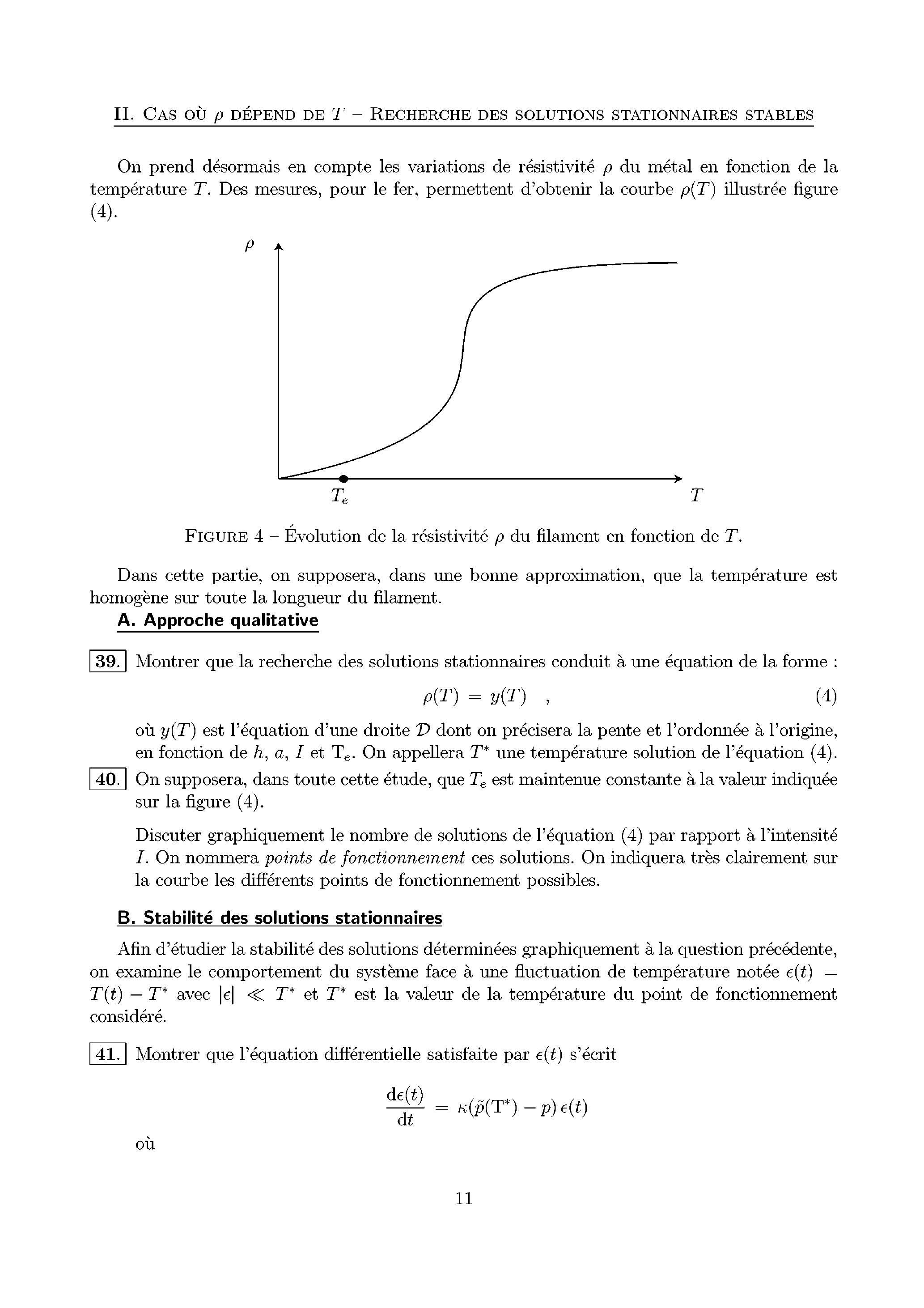 40. On supposera, dans toute cette étude, que est maintenue constante à la valeur indiquée sur la figure (4).