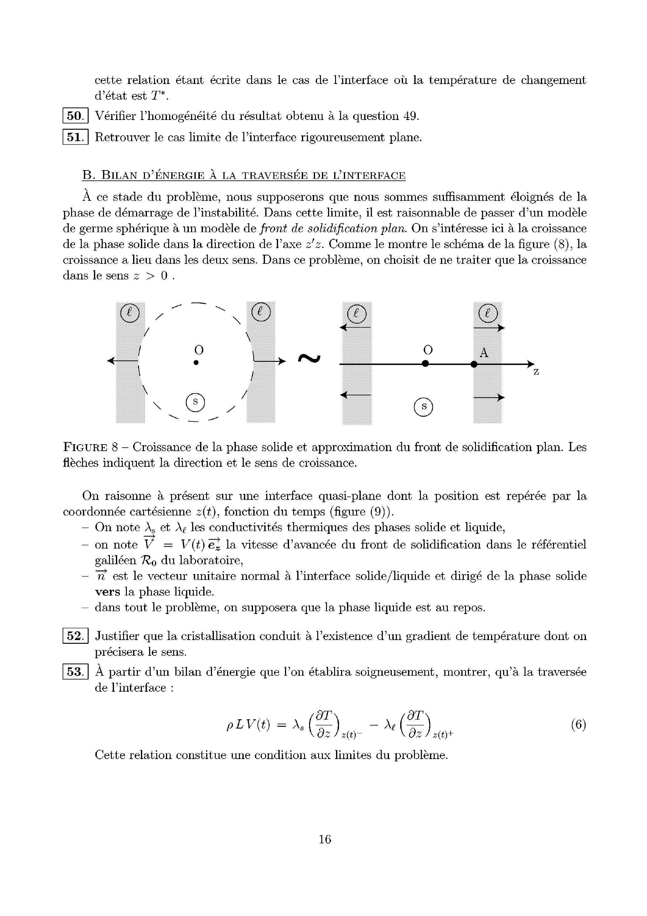 On notera et les solutions stationnaires de (7) établies respectivement dans la phase solide et dans la phase liquide. On supposera que la température du liquide, loin de l'interface, est constante. On la notera .