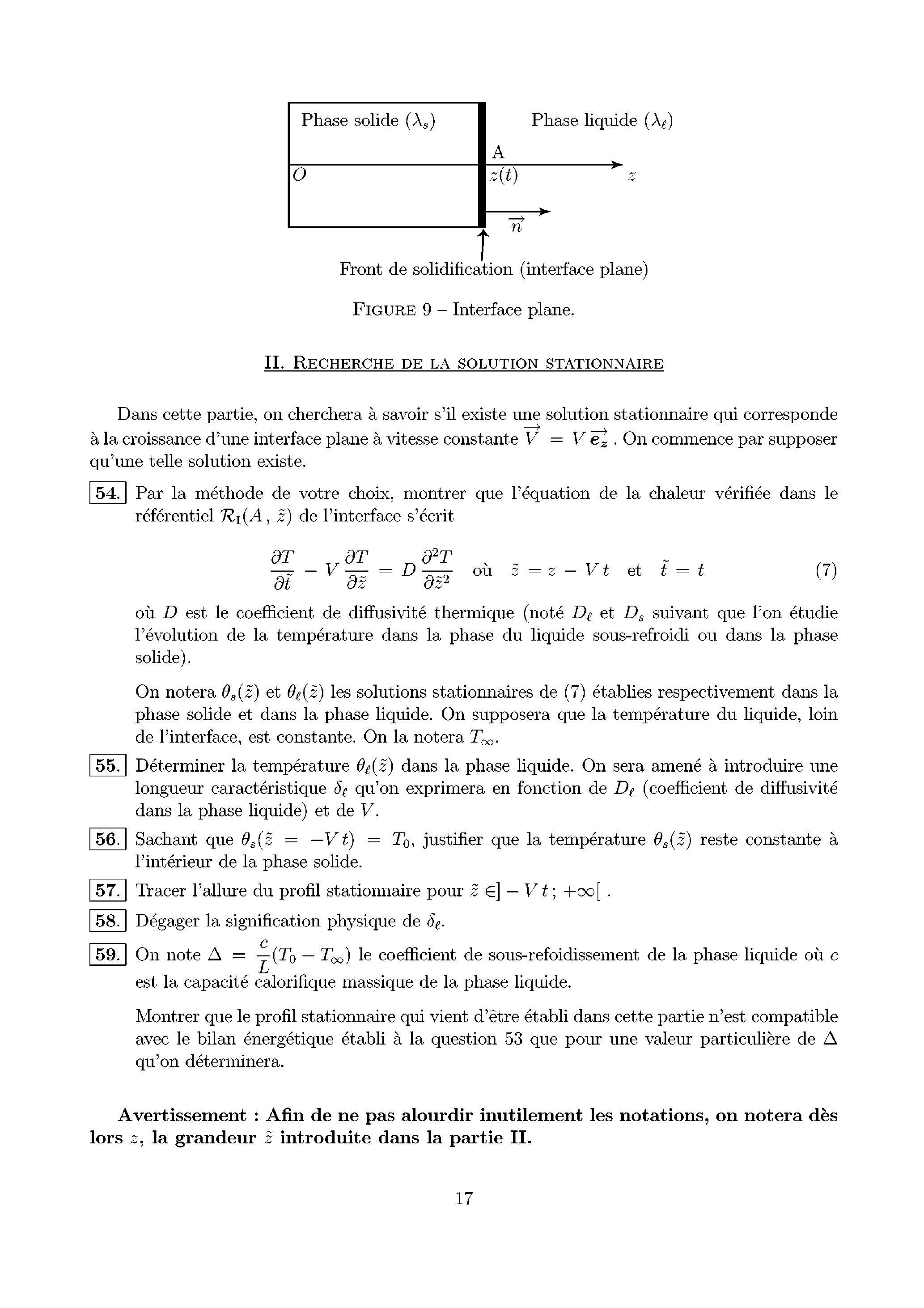 54. Par la méthode de votre choix, montrer que l'équation de la chaleur vérifiée dans le référentiel de l'interface s'écrit