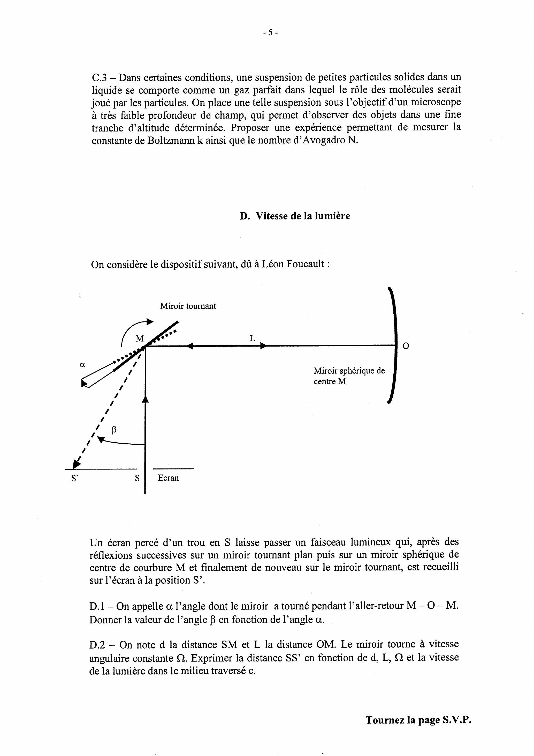 Ce problème s'intéresse à la détermination expérimentale de quelques constantes fondamentales de la physique. Il comporte cinq parties indépendantes.