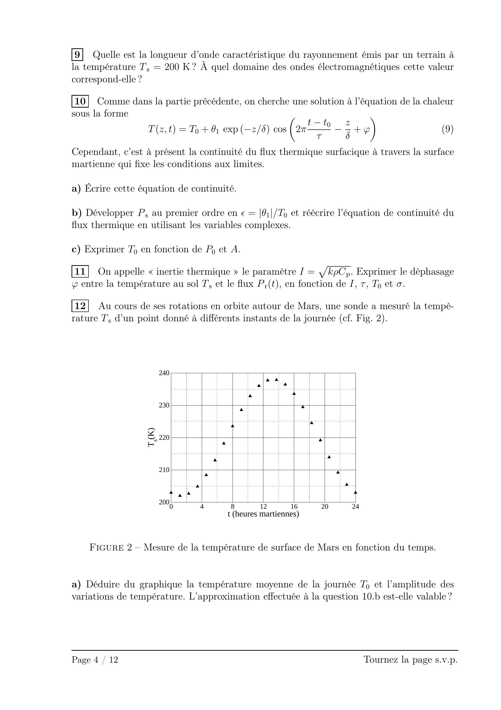 12 Au cours de ses rotations en orbite autour de Mars, une sonde a mesuré la température d'un point donné à différents instants de la journée (cf. Fig. 2).
