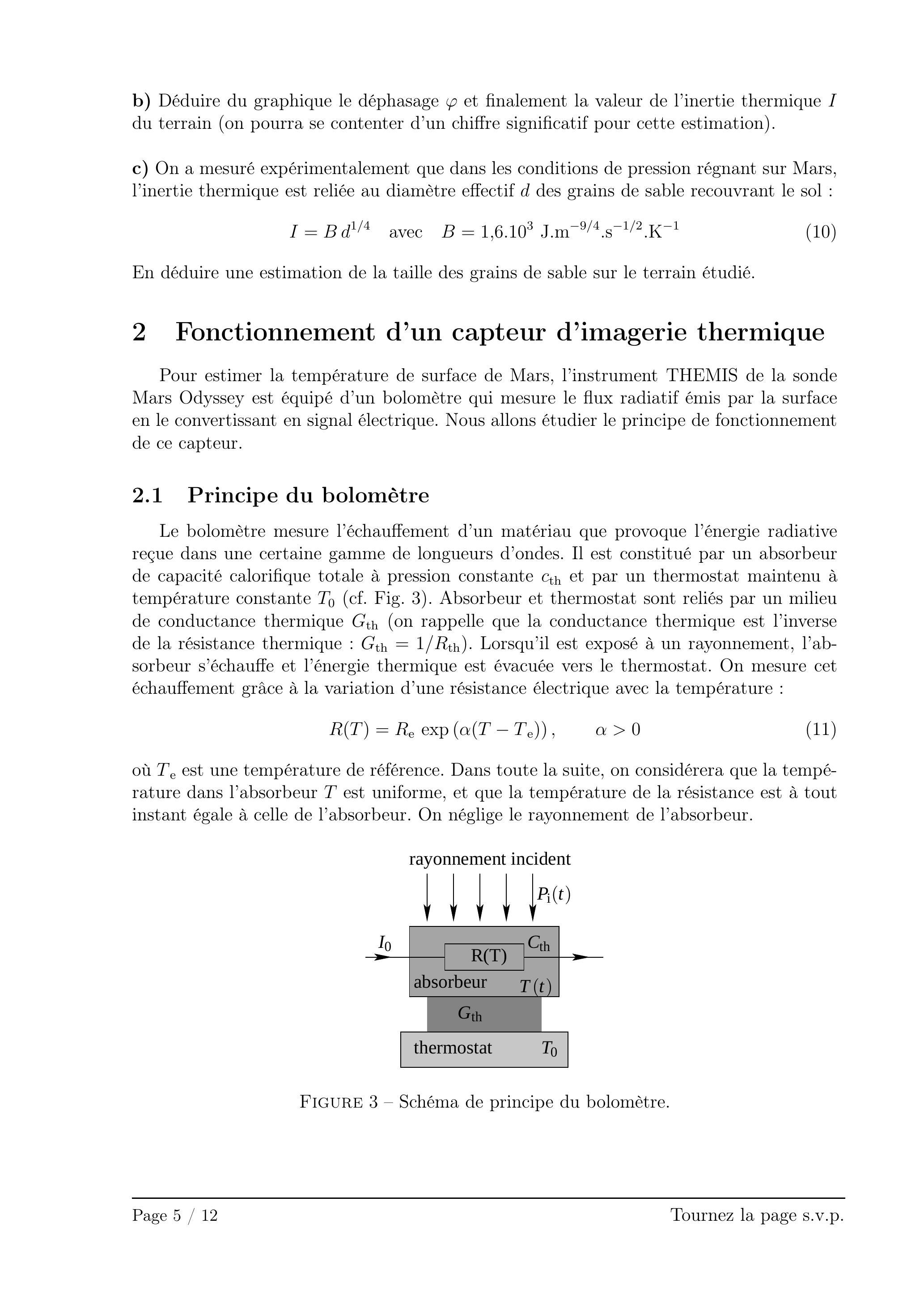 Pour estimer la température de surface de Mars, l'instrument THEMIS de la sonde Mars Odyssey est équipé d'un bolomètre qui mesure le flux radiatif émis par la surface en le convertissant en signal électrique. Nous allons étudier le principe de fonctionnement de ce capteur.