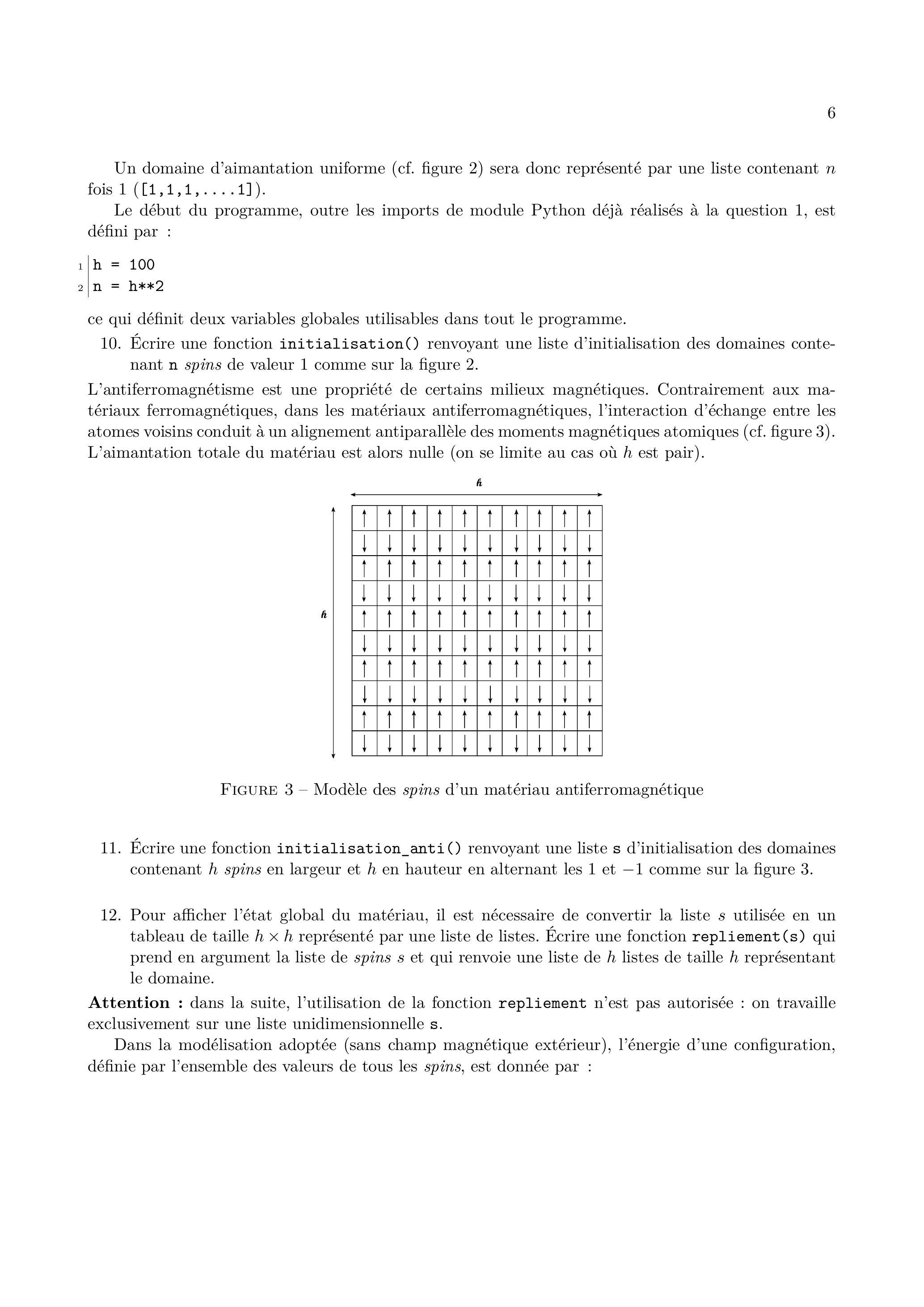 10. Écrire une fonction initialisation() renvoyant une liste d'initialisation des domaines contenant n spins de valeur 1 comme sur la figure 2 .