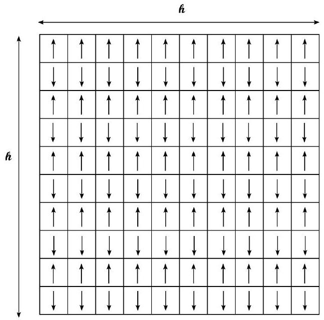 L'échantillon modélisé est une zone carrée à deux dimensions possédant spins régulièrement répartis dans chaque direction, donc formant une grille carrée de spins. Chaque spin ne possède que deux états down ou up, ce que l'on modélise par une variable .