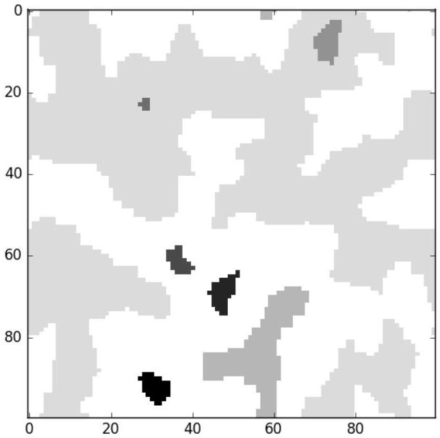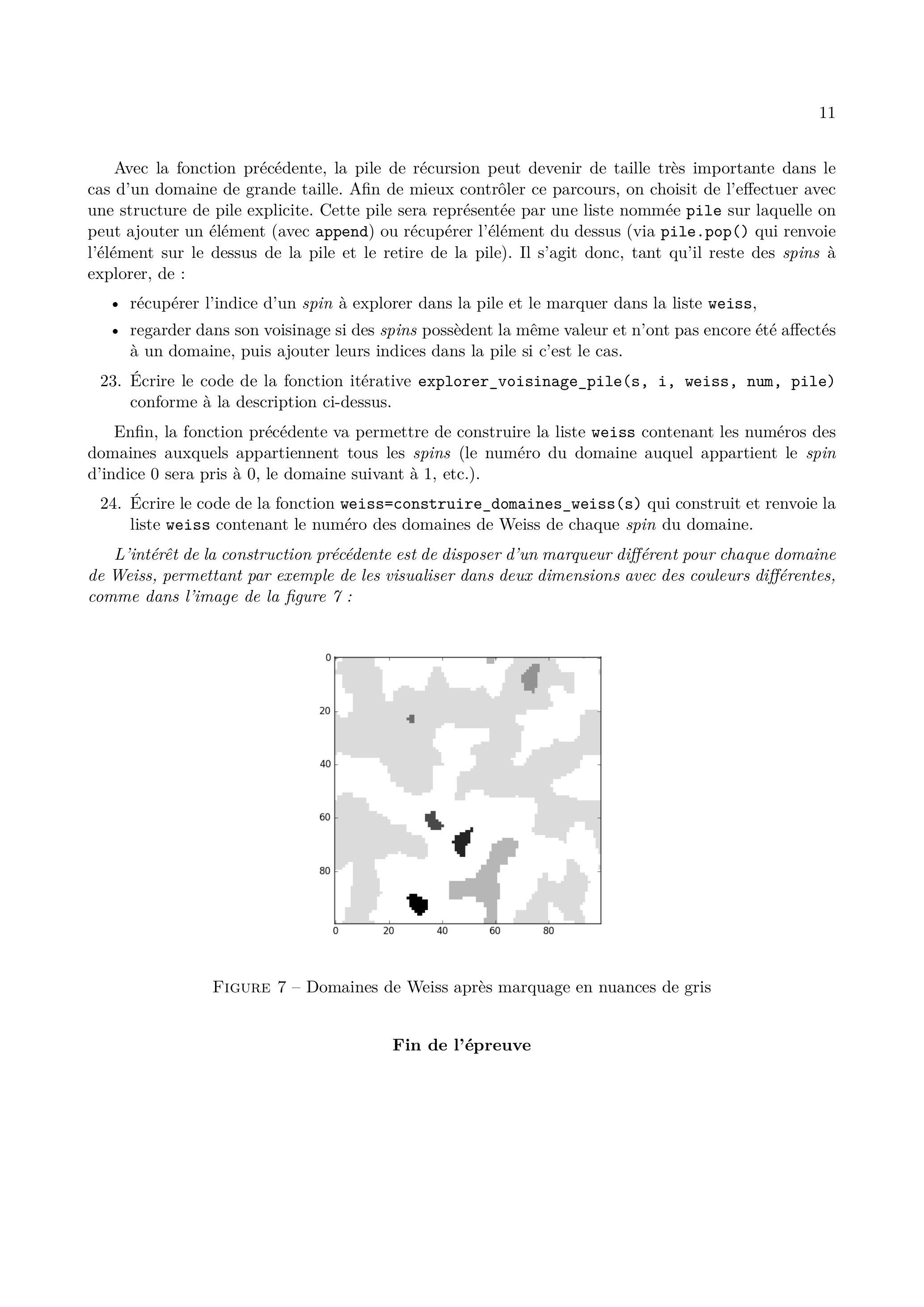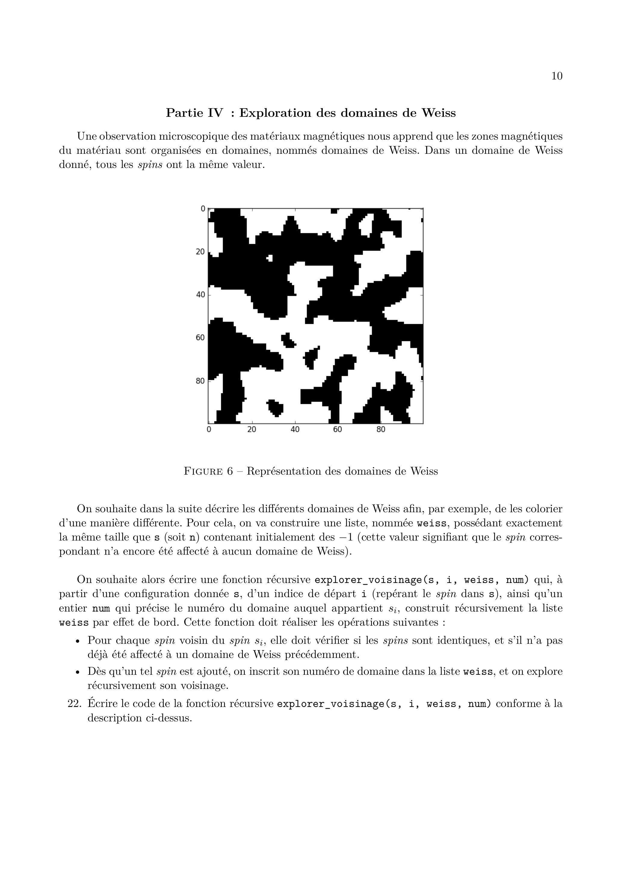 Enfin, la fonction précédente va permettre de construire la liste weiss contenant les numéros des domaines auxquels appartiennent tous les spins (le numéro du domaine auquel appartient le spin d'indice 0 sera pris à 0 , le domaine suivant à 1 , etc.).