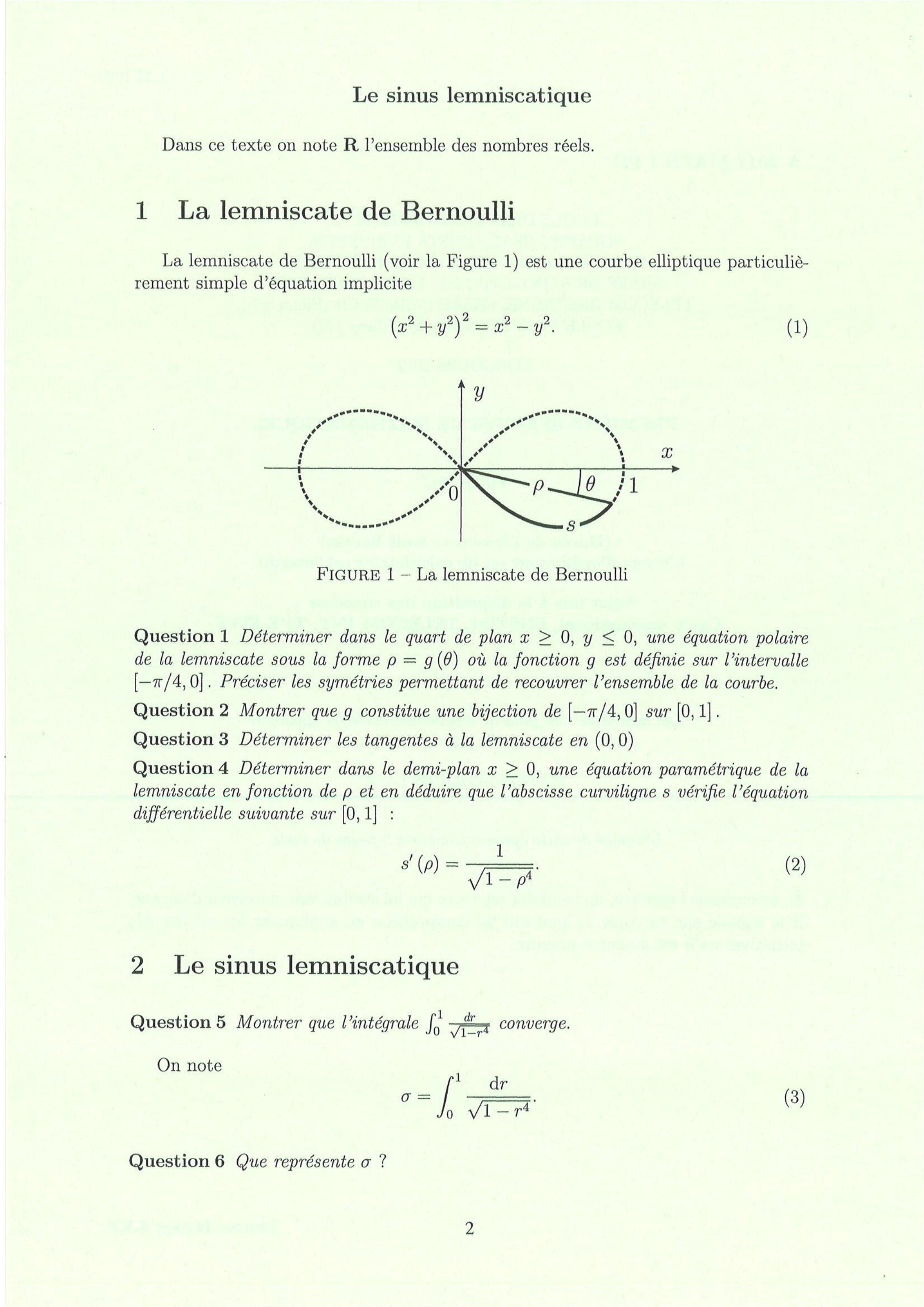 La lemniscate de Bernoulli (voir la Figure 1) est une courbe elliptique particulièrement simple d'équation implicite