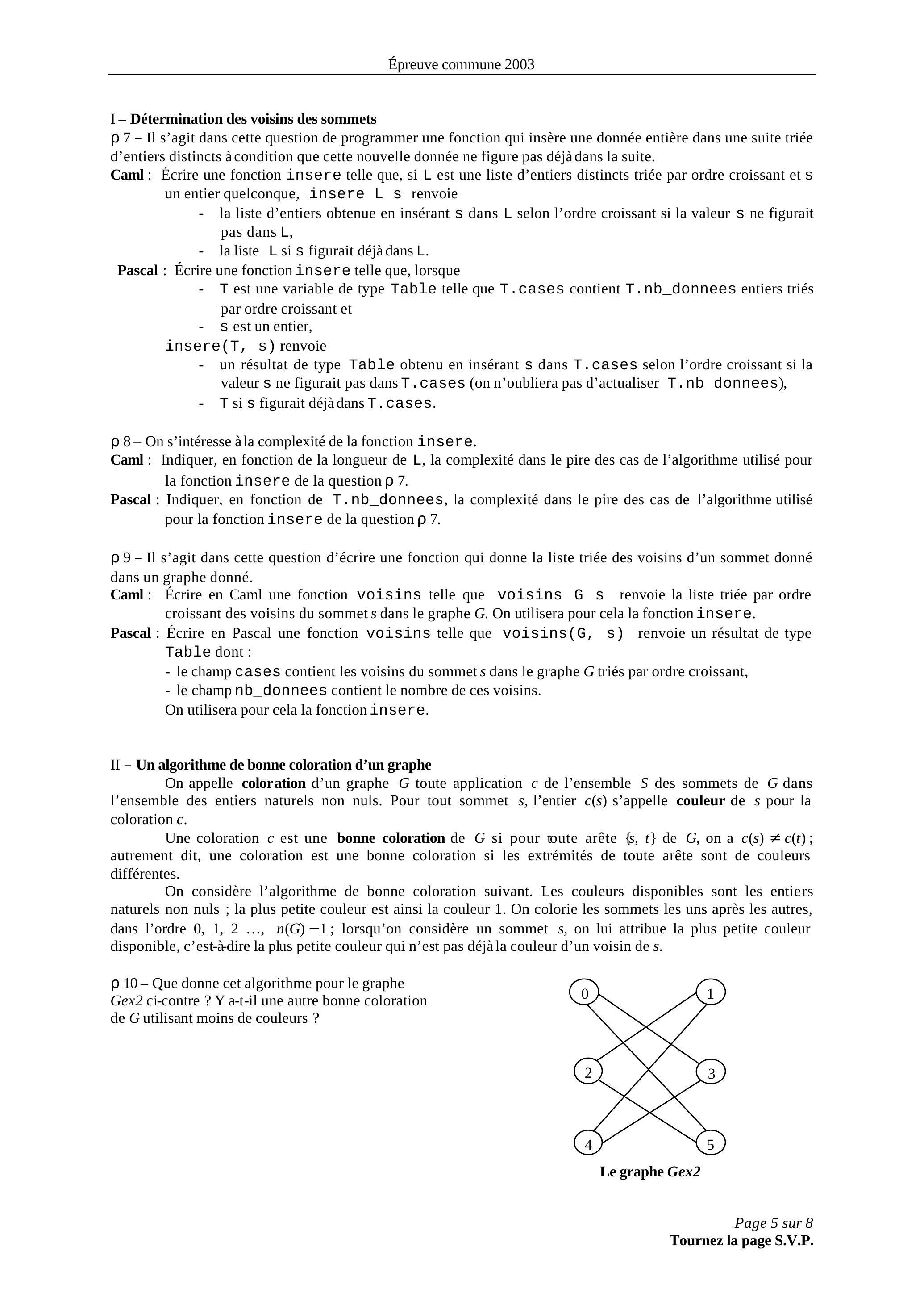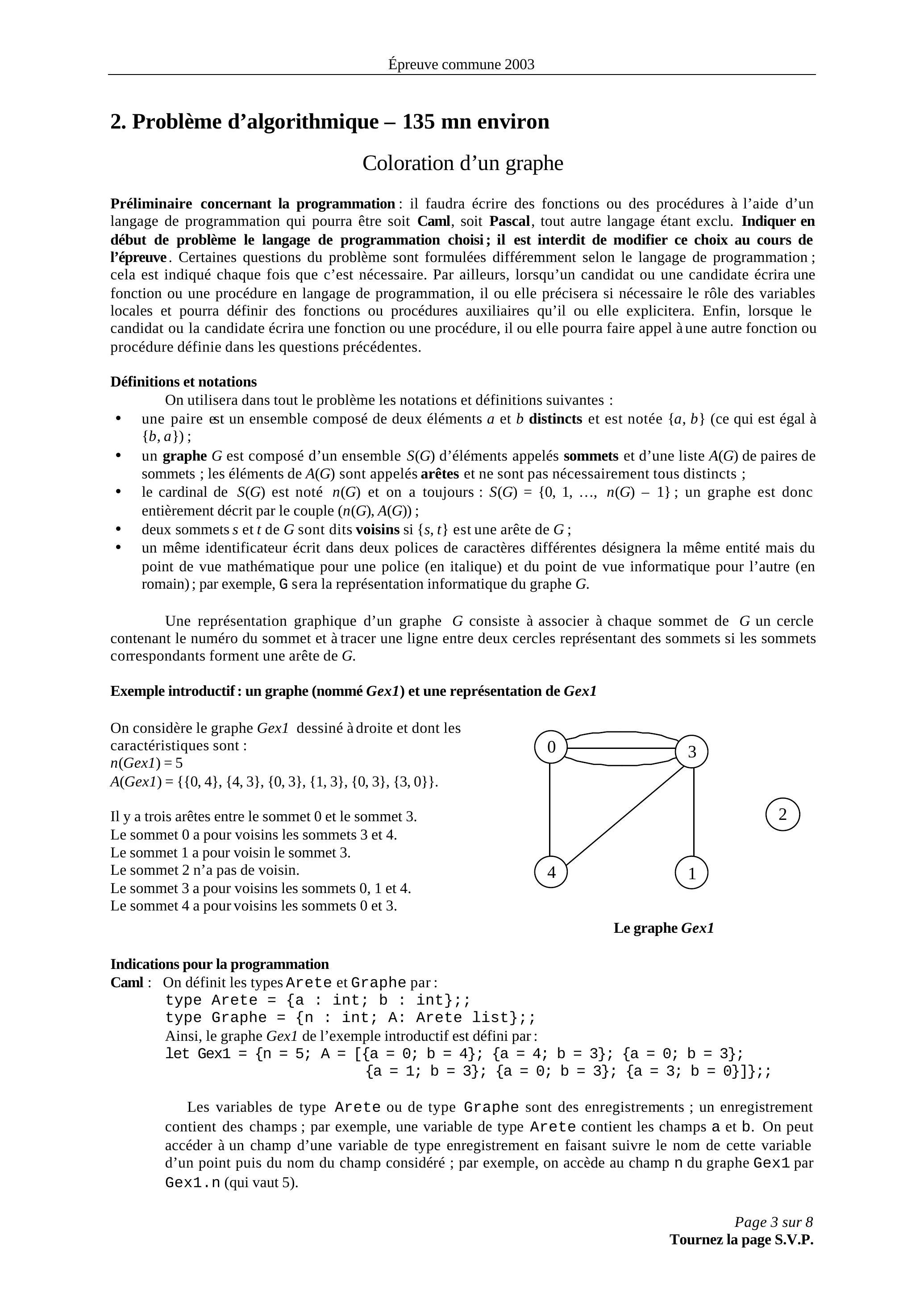 - un problème d'algorithmique, pages 3 à 8 , à résoudre en 135 mn environ.