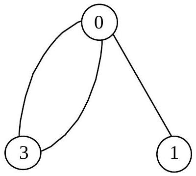 Il y a trois arêtes entre le sommet 0 et le sommet 3 .