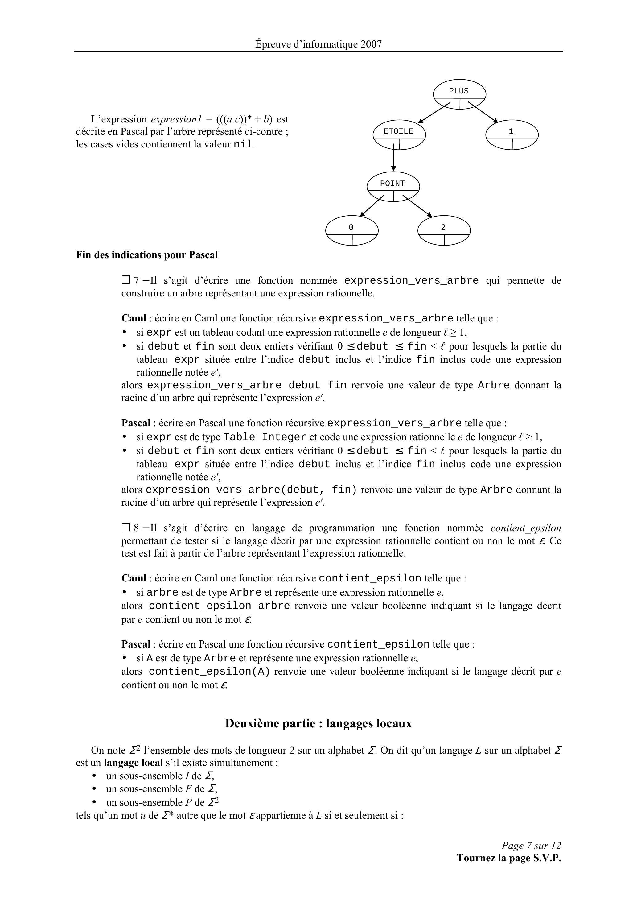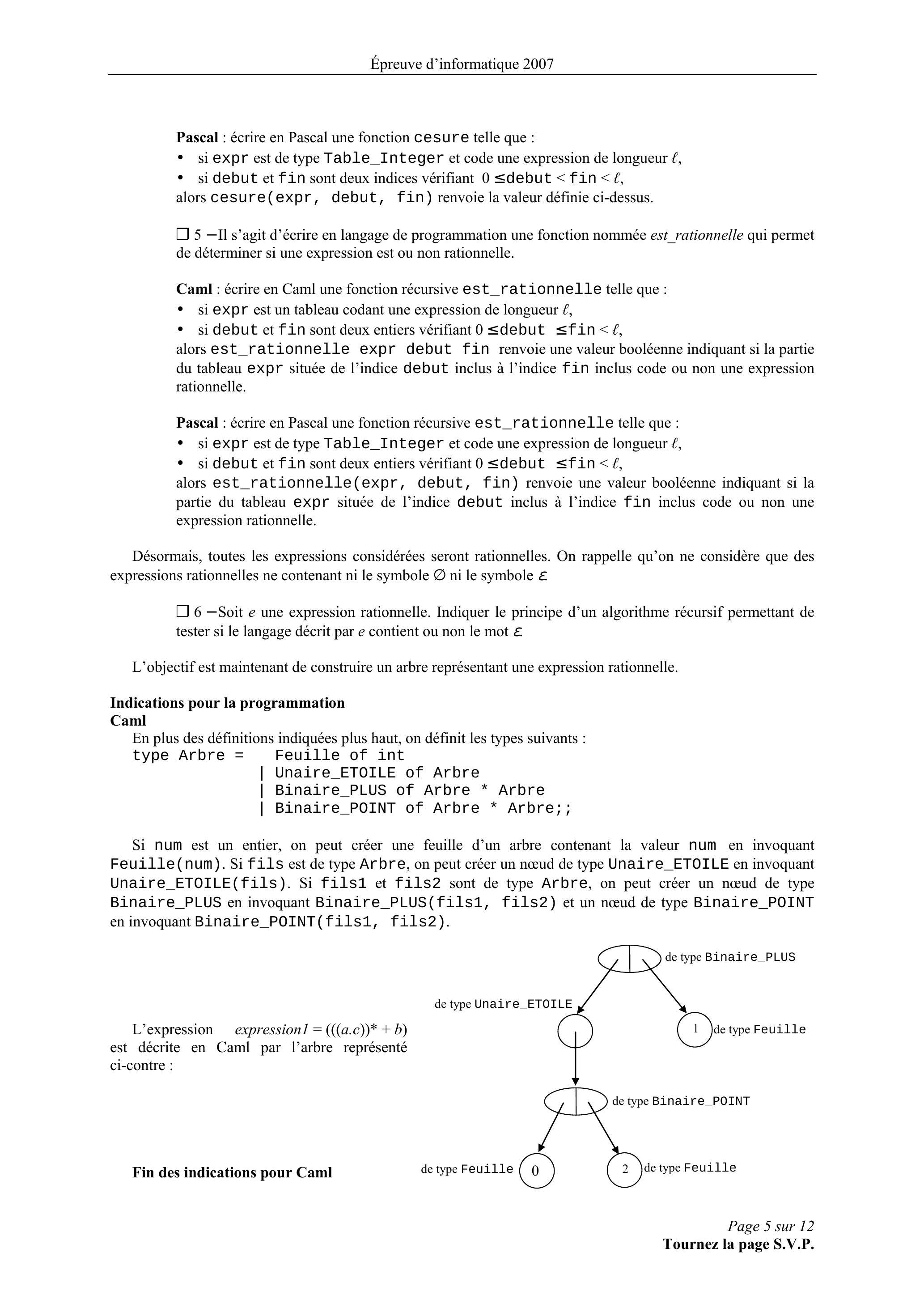 • si arbre est de type Arbre et représente une expression rationnelle sur un alphabet comme cela a été décrit avant la question ,