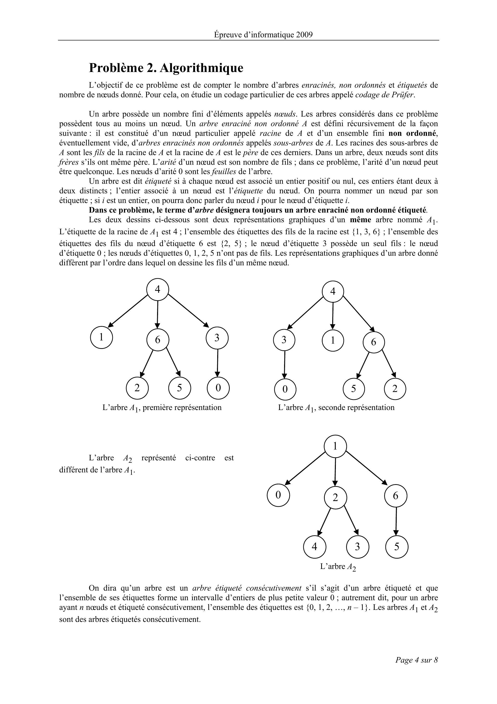 Il faudra écrire des fonctions ou des procédures à l'aide d'un langage de programmation qui pourra être soit Caml, soit Pascal, tout autre langage étant exclu. Indiquer en début d'épreuve le langage de programmation choisi; il est interdit de modifier ce choix au cours de l'épreuve. Certaines questions des problèmes sont formulées différemment selon le langage de programmation ; cela est indiqué chaque fois que cela est nécessaire. Lorsque le candidat écrira une fonction ou une procédure, il pourra faire appel à une autre fonction ou procédure définie dans les questions précédentes. Enfin, si les paramètres d'une fonction ou d'une procédure à écrire sont supposés vérifier certaines hypothèses, il ne sera pas utile dans l'écriture de cette fonction ou de cette procédure de tester si les hypothèses sont bien vérifiées.