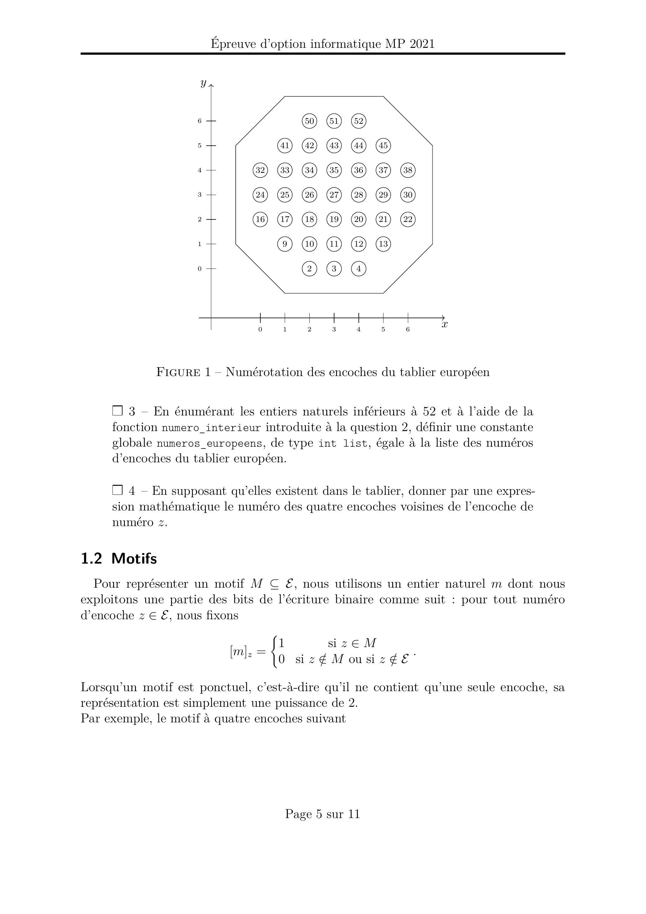 Nous numérotons l'encoche de coordonnées dans le tablier européen par l'entier (voir figure 1, page 5). Nous notons l'ensemble des numéros d'encoches du tablier européen par