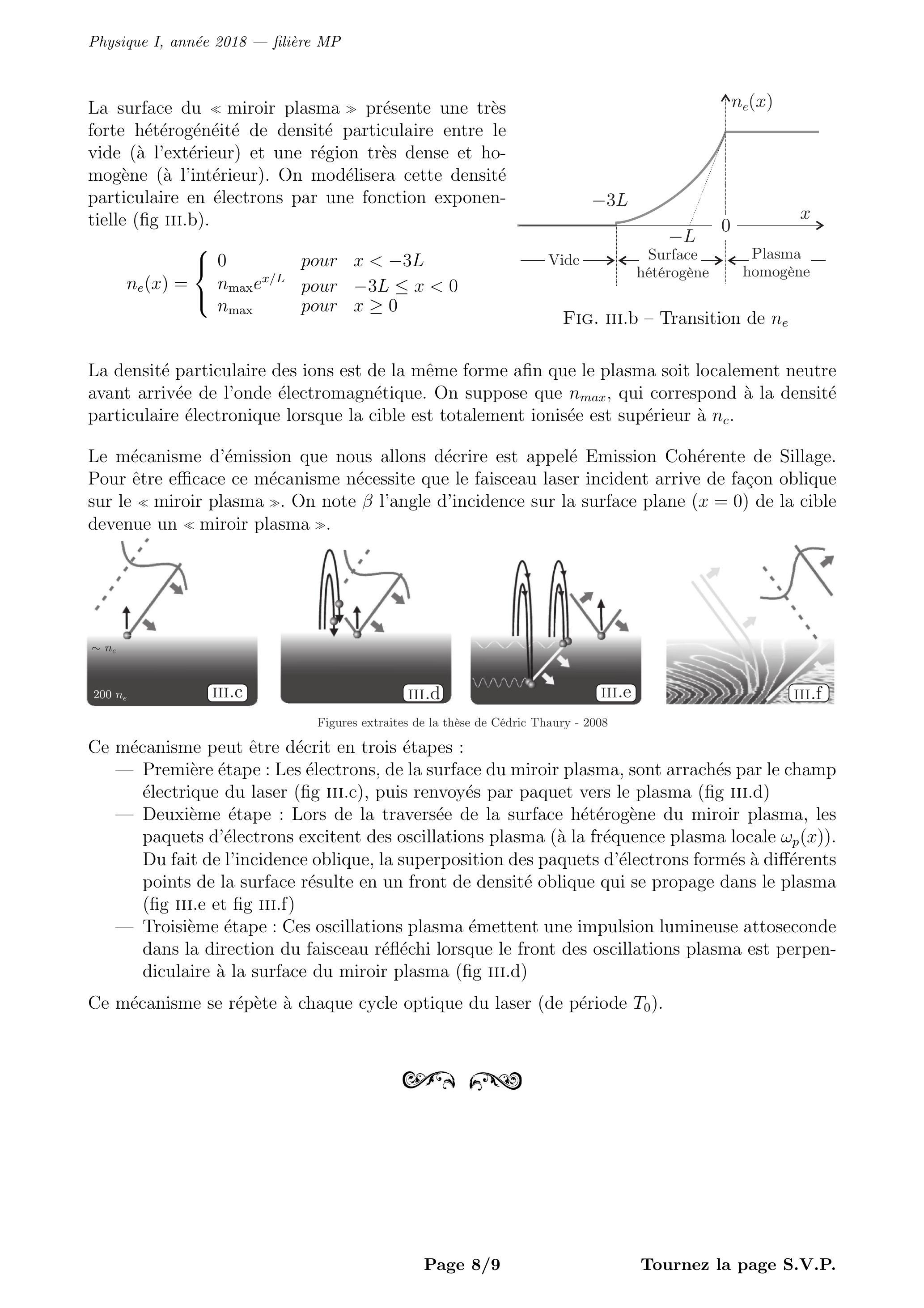 La surface du << miroir plasma >> présente une très forte hétérogénéité de densité particulaire entre le vide (à l'extérieur) et une région très dense et homogène (à l'intérieur). On modélisera cette densité particulaire en électrons par une fonction exponentielle (fig III.b).