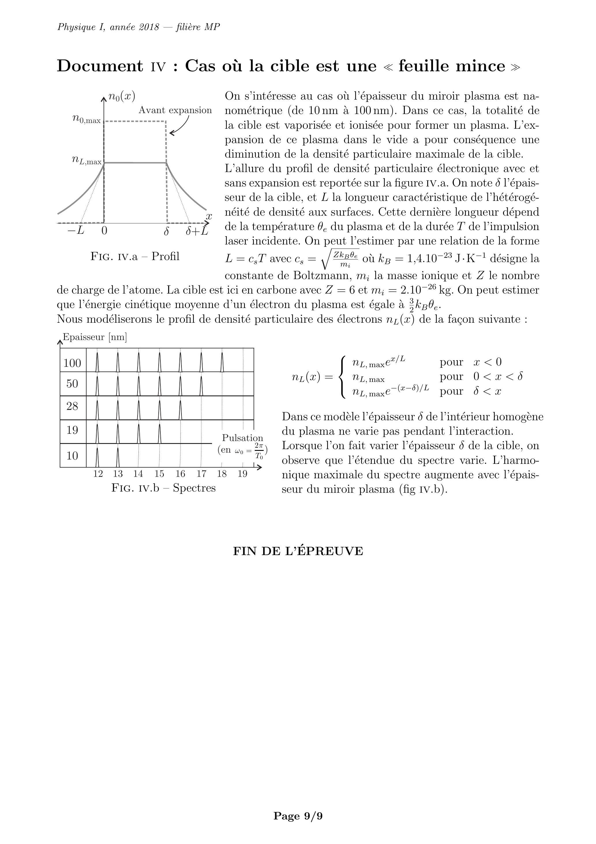 On suppose dans un second modèle que l'énergie cinétique totale des électrons du plasma ne dépend pas de l'épaisseur du plasma. On note l'épaisseur de la feuille la plus épaisse lors de l'expérience ( ) et la longueur caractéristique du gradient de ce plasma d'épaisseur .
