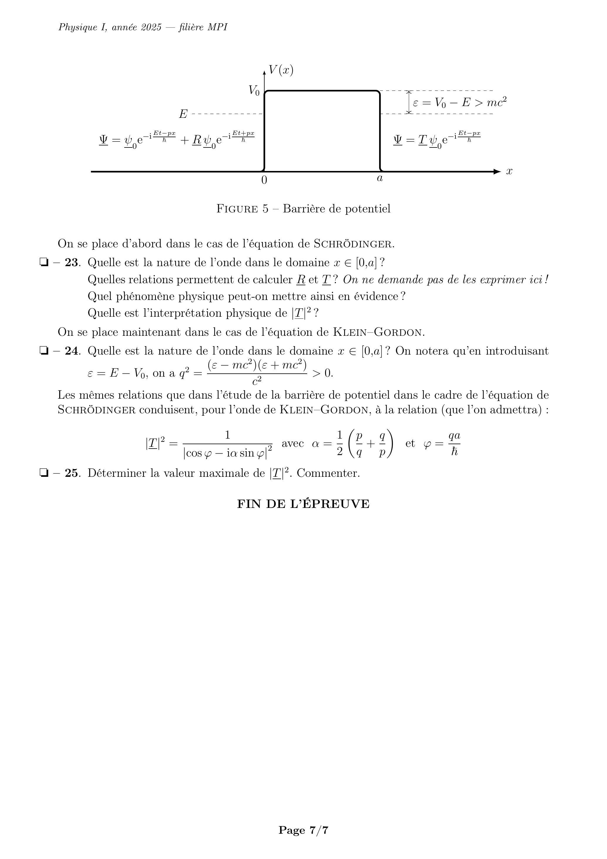 1. Répondre aux mêmes questions dans le cas d'une particule vérifiant l'équation de KleINGordon (5).