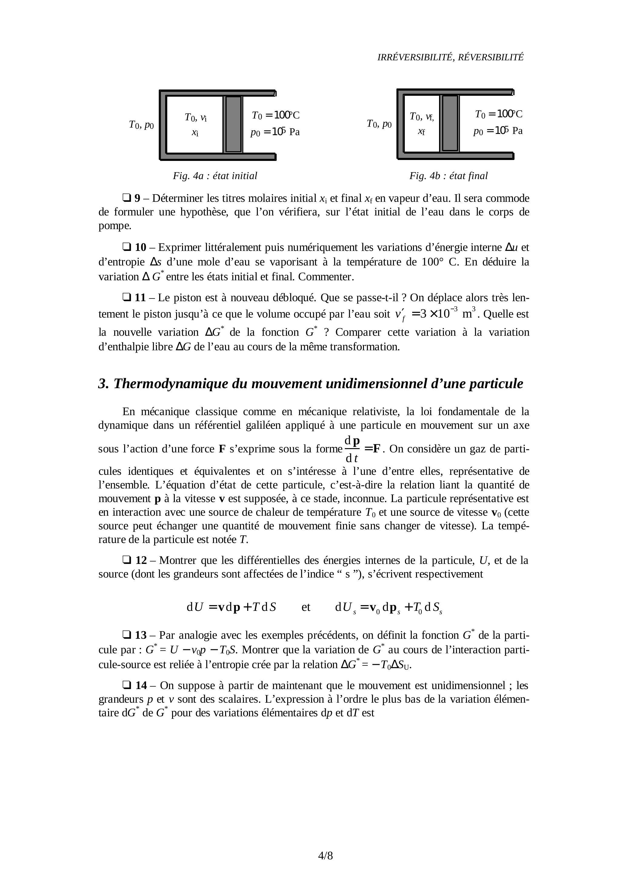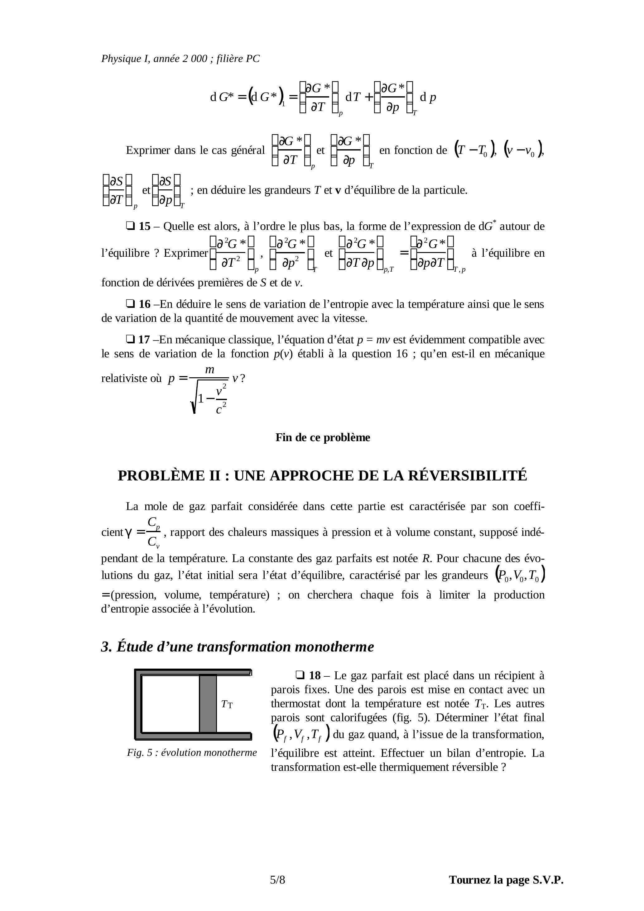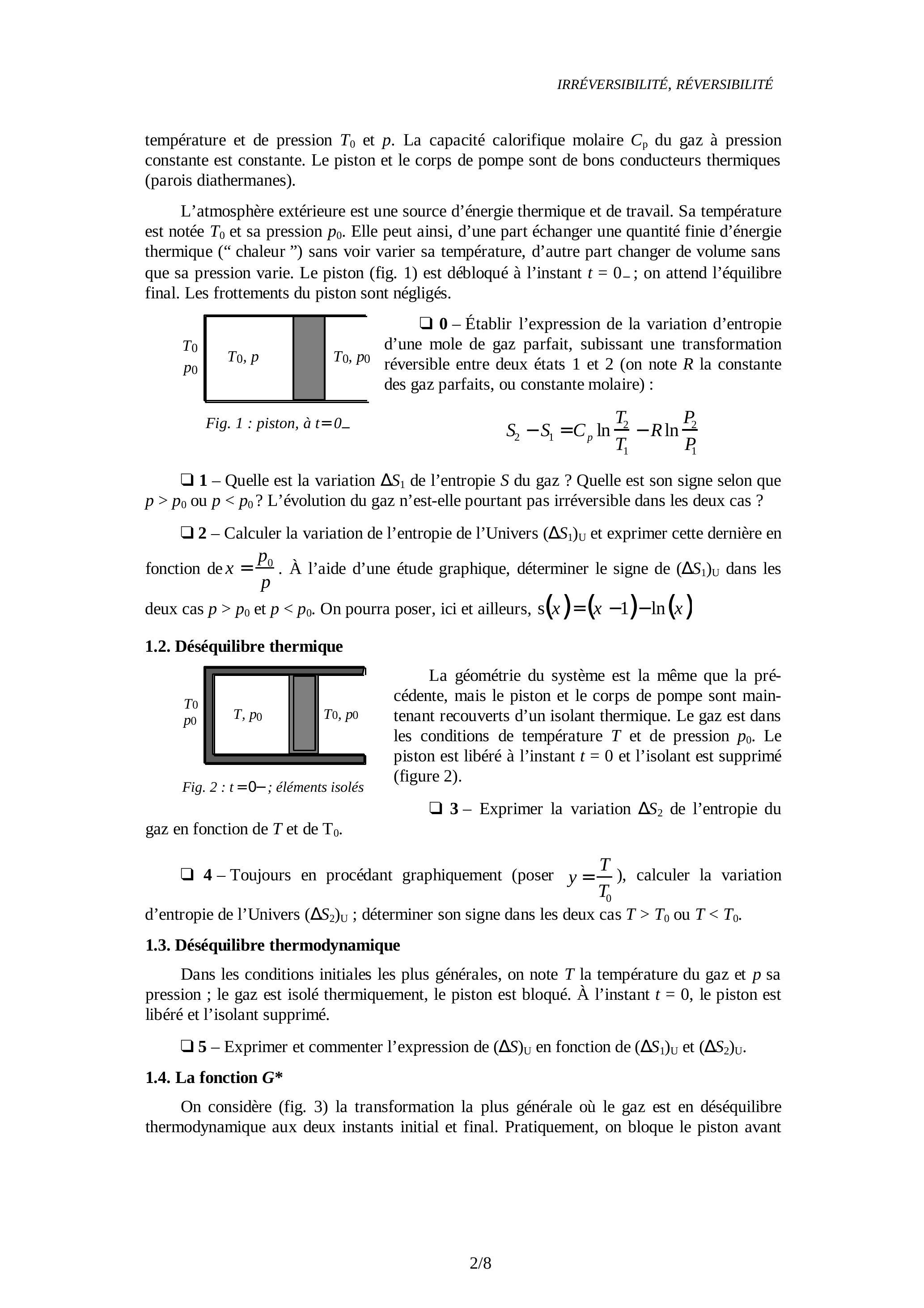 PROBLÈME I : IRRÉVERSIBILITÉ ET FONCTION G*