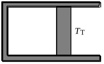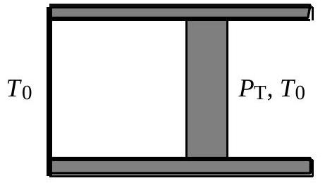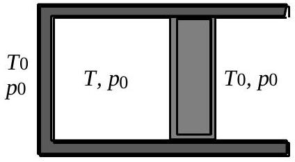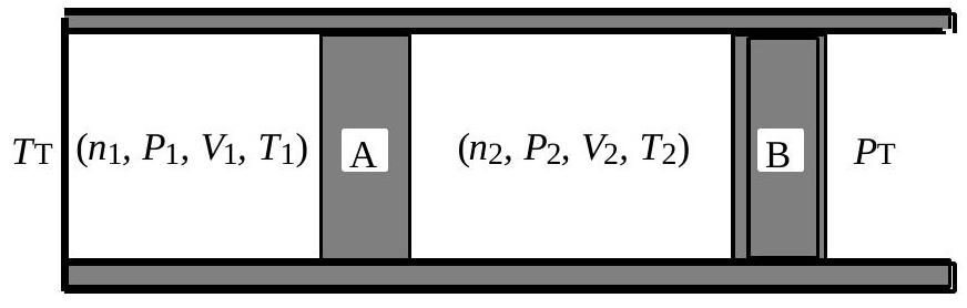 La figure 7 illustre la situation initiale du système. La paroi A est diathermane. Les parois latérales et la paroi B sont calorifugées. Cette dernière, initialement bloquée, peut se déplacer sans frottement. La pression extérieure, notée