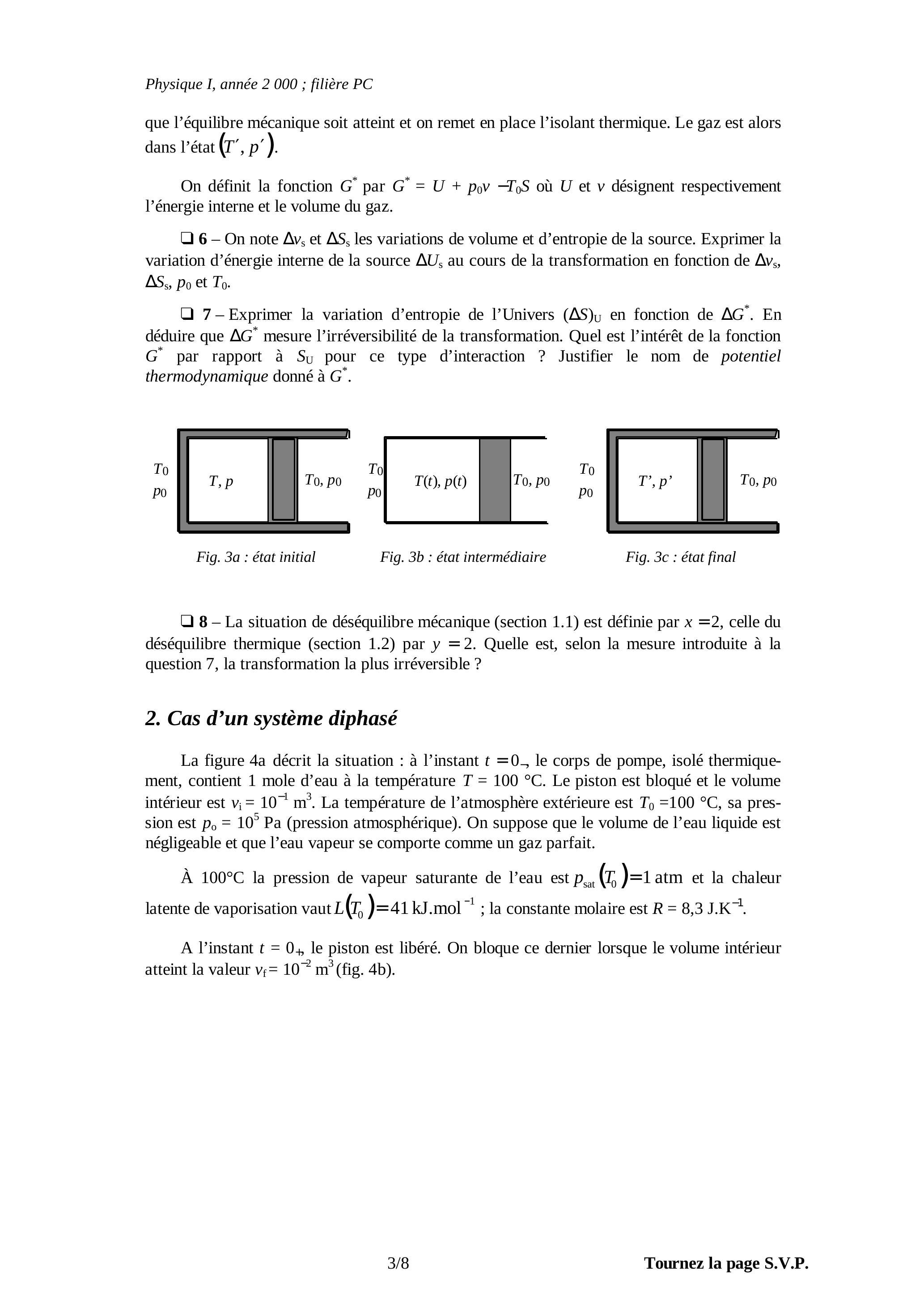 en vapeur d'eau. Il sera commode de formuler une hypothèse, que l'on vérifiera, sur l'état initial de l'eau dans le corps de pompe.
