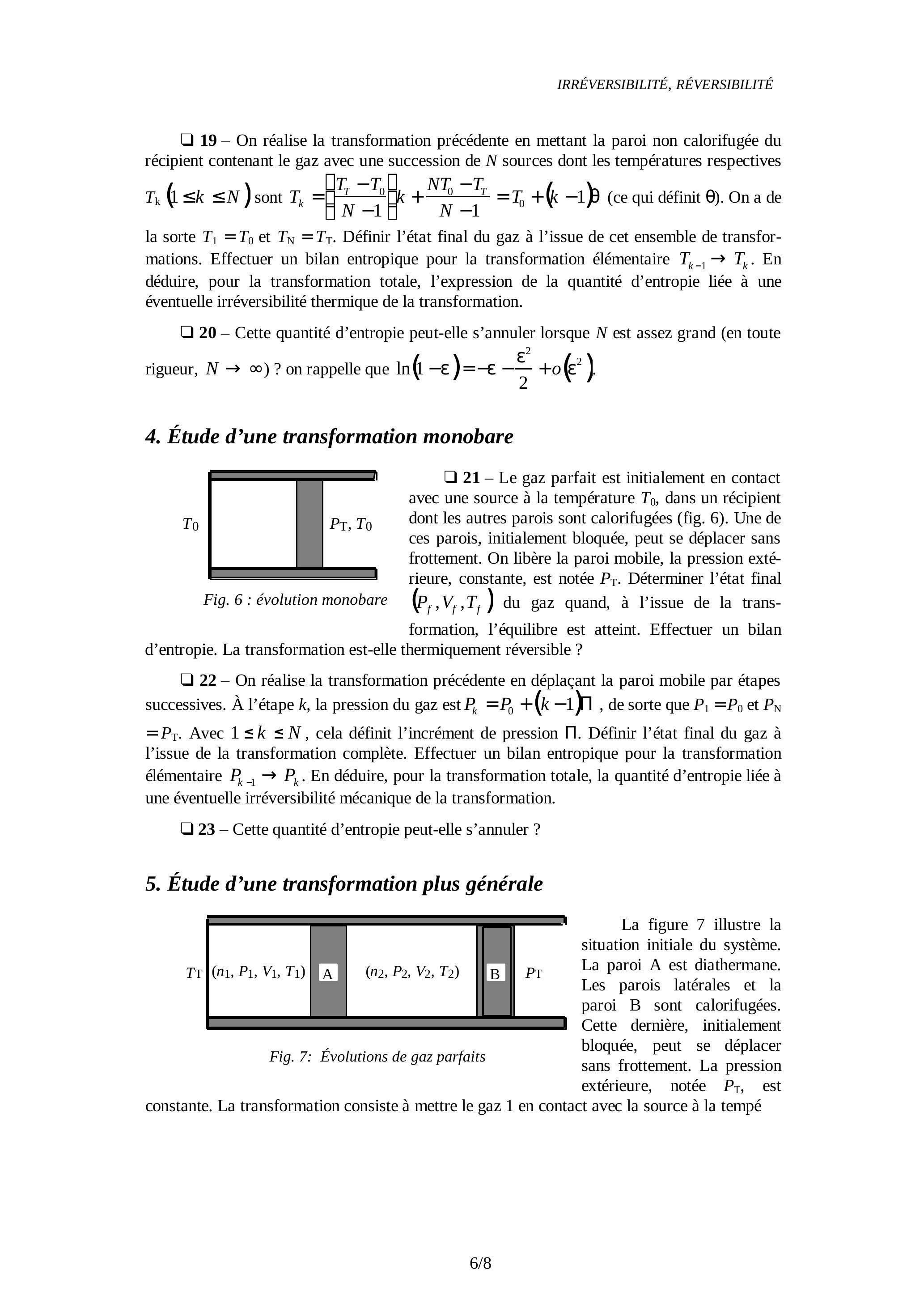 22 - On réalise la transformation précédente en déplaçant la paroi mobile par étapes successives. À l'étape