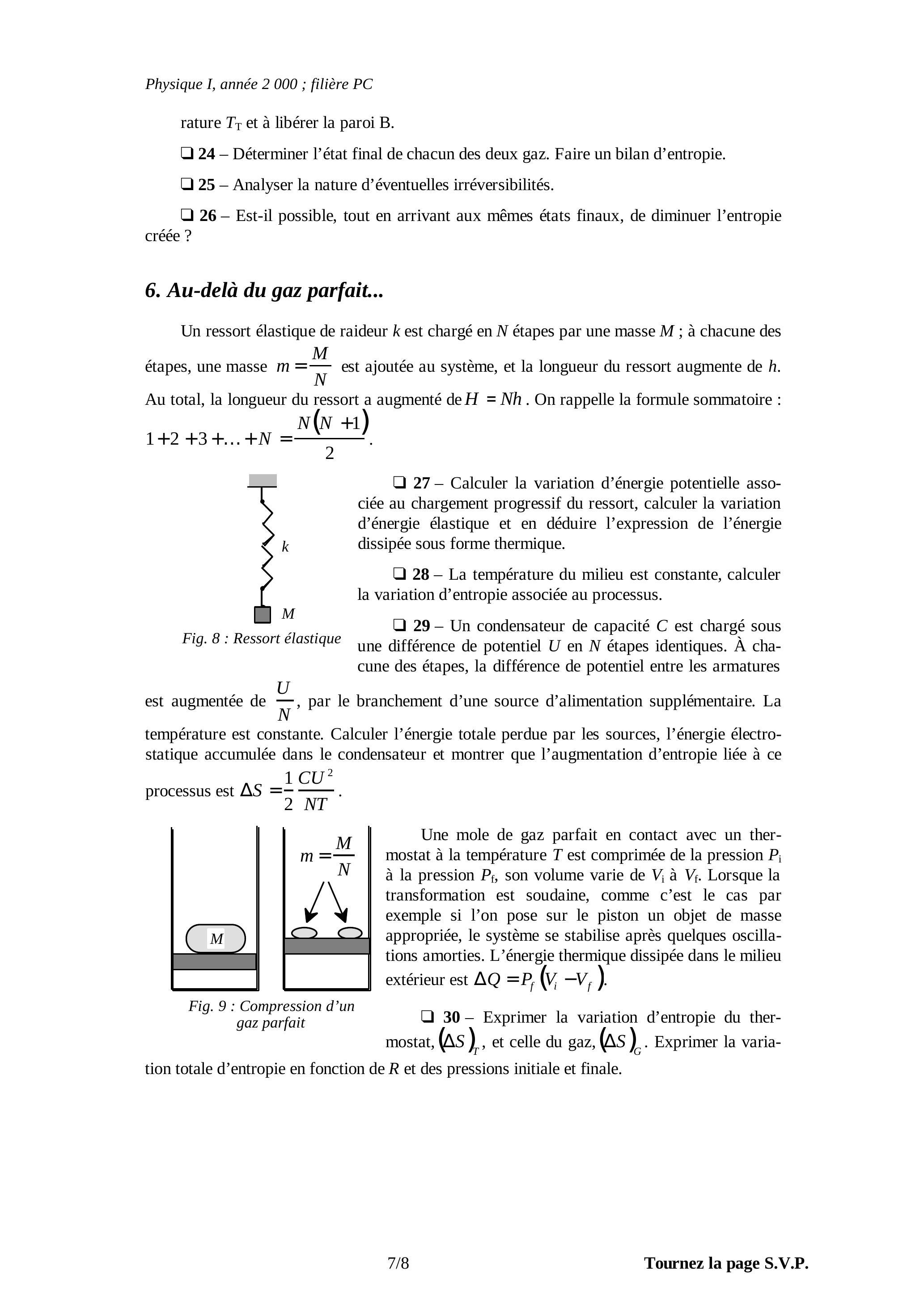 - 24 - Déterminer l’état final de chacun des deux gaz. Faire un bilan d’entropie.