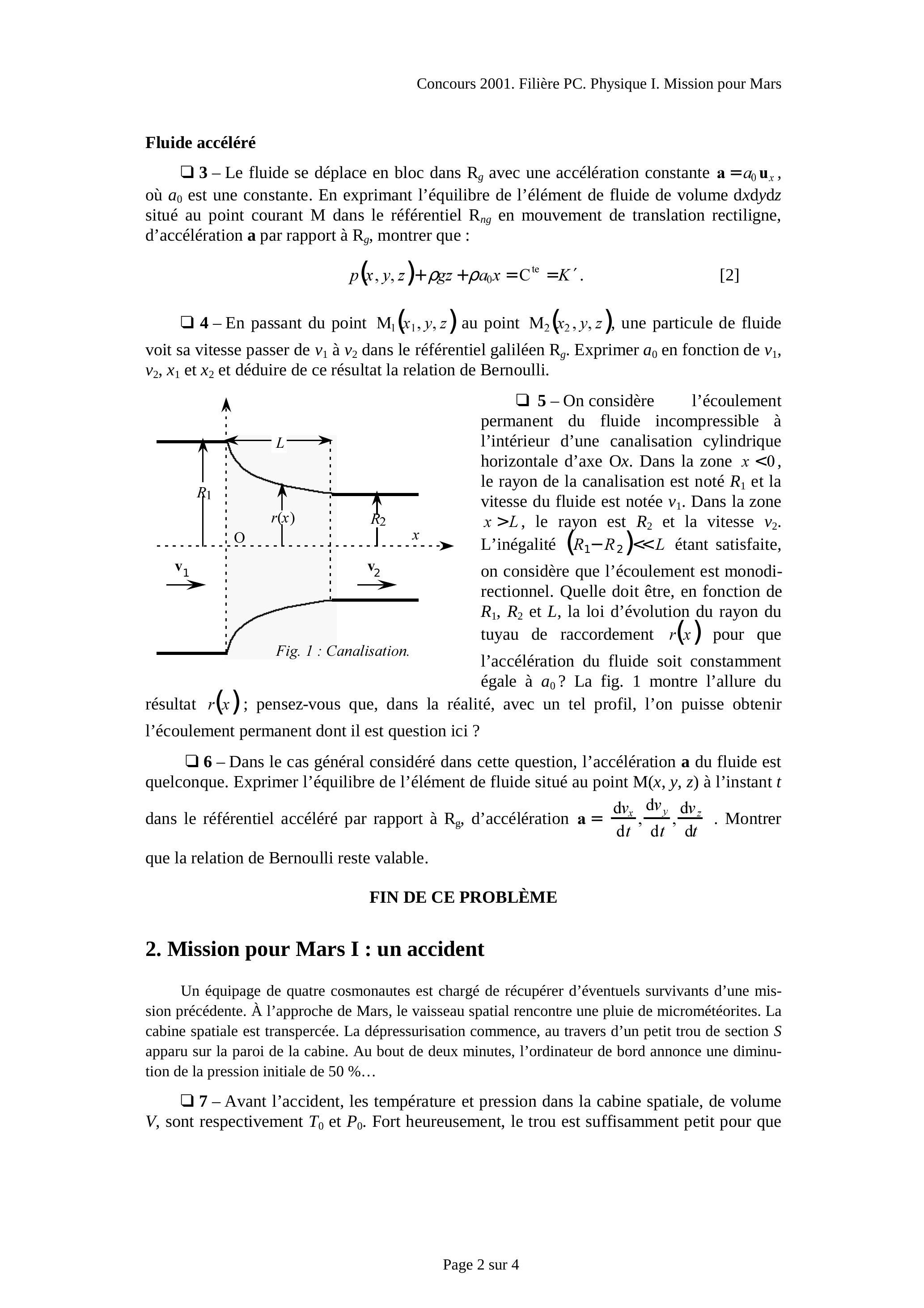 5 - On considère l'écoulement permanent du fluide incompressible à l'intérieur d'une canalisation cylindrique horizontale d'axe