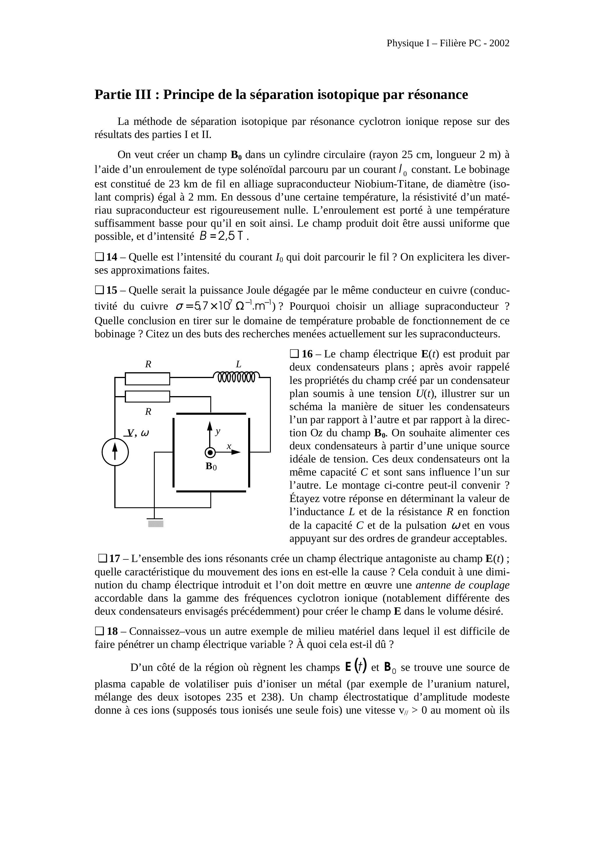 Mines Physique 1 PC 2002 - Version Web LaTeX | WikiPrépa | WikiPrépa