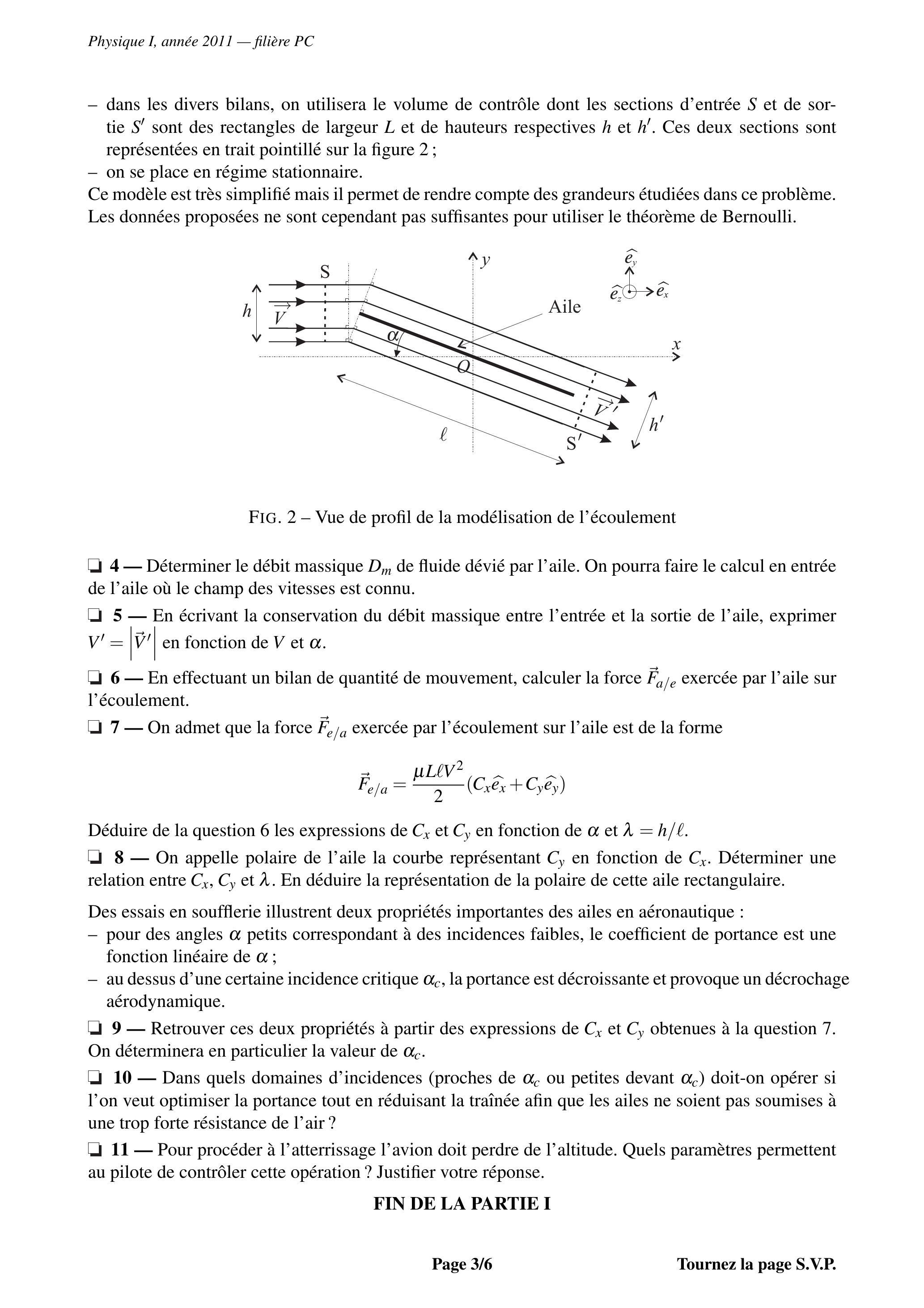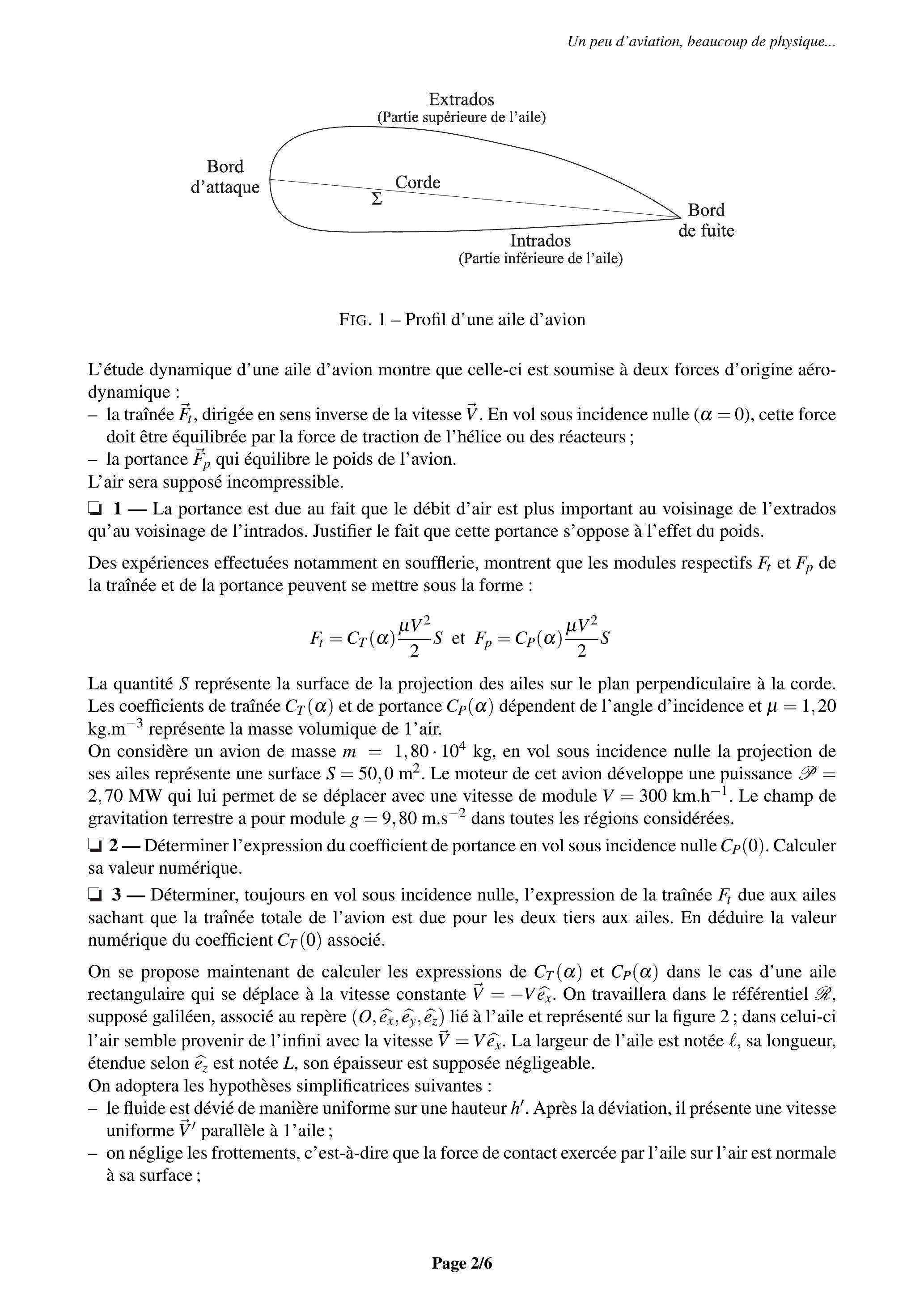 L'air sera supposé incompressible. - La portance est due au fait que le débit d'air est plus important au voisinage de l'extrados qu'au voisinage de l'intrados. Justifier le fait que cette portance s'oppose à l'effet du poids.