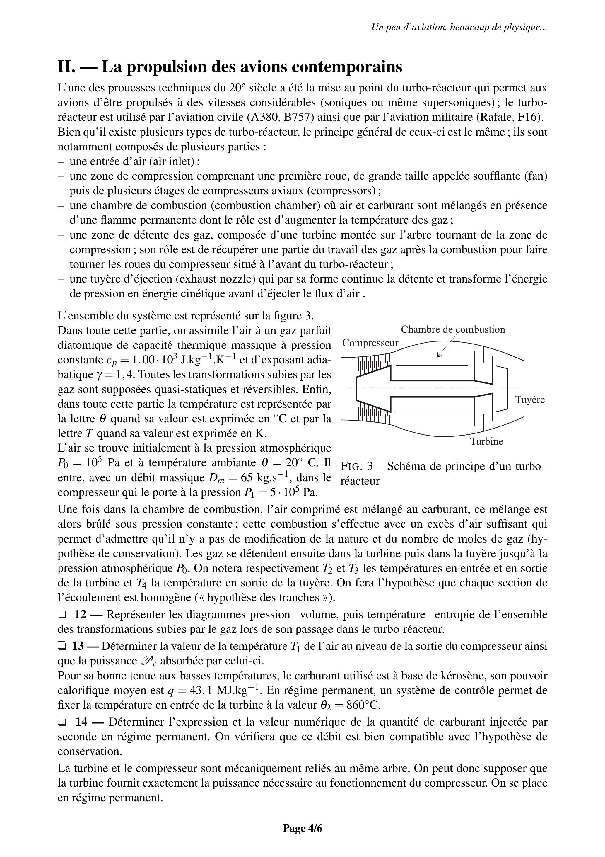 Dans toute cette partie, on assimile l'air à un gaz parfait diatomique de capacité thermique massique à pression constante et d'exposant adiabatique . Toutes les transformations subies par les gaz sont supposées quasi-statiques et réversibles. Enfin, dans toute cette partie la température est représentée par la lettre quand sa valeur est exprimée en et par la lettre quand sa valeur est exprimée en K .