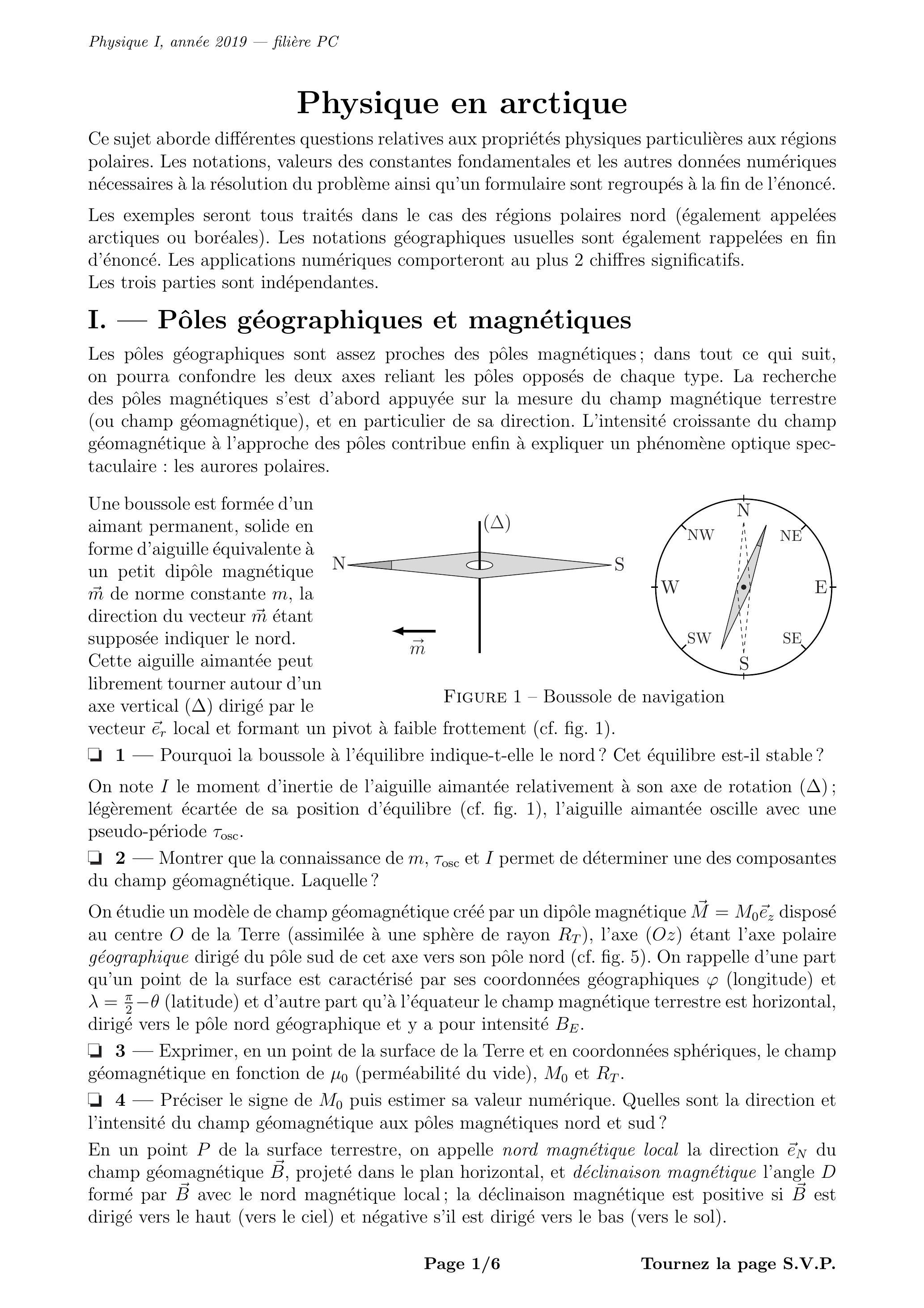 Ce sujet aborde différentes questions relatives aux propriétés physiques particulières aux régions polaires. Les notations, valeurs des constantes fondamentales et les autres données numériques nécessaires à la résolution du problème ainsi qu'un formulaire sont regroupés à la fin de l'énoncé.