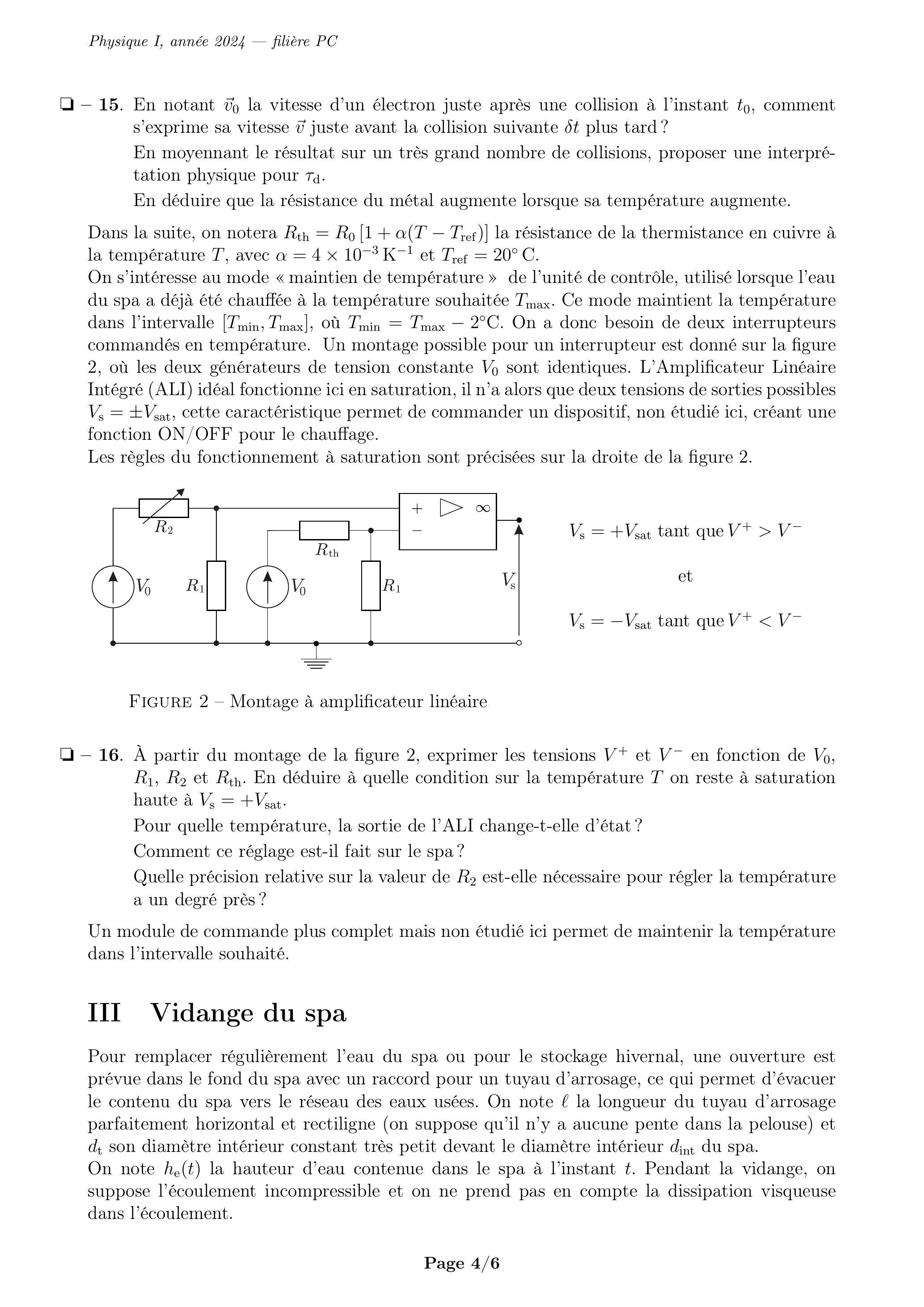 Dans la suite, on noterala résistance de la thermistance en cuivre à la température , avec et .